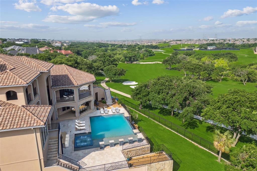 ** SELLER IS TAKING A MARKETING BREAK. CONTACT LISTING AGENT FOR INFORMATION! ** Spectacular million dollar remodel performed in 2024. Step into a world where luxury and breathtaking views embrace you at every turn. This magnificent Mediterranean-style estate, sprawling across nearly 10,000 square feet on a lush 0.6-acre lot, is nestled in the heart of the prestigious, 24-hour guard-gated community of Castle Hills. Here, life unfolds in a way that feels both extraordinary and inviting. With its elegant three-story design, complete with an elevator and stunning views of the golf course, this home is a sanctuary of sophistication. Picture yourself entering through an awe-inspiring foyer, finding inspiration in a distinguished study, enjoying playful moments in the game room, and retreating to private bedroom suites. The main living area is a masterpiece of design, featuring massive glass windows that flood the space with light, a grand dining room perfect for gatherings, and a full wet bar and butler’s pantry for effortless entertaining. The modern Chef's Kitchen is a dream come true, with top-of-the-line 72-inch Subzero-Wolf appliances, an exquisite Italian marble island, and a sunny breakfast nook that offers glorious views of the golf course. There's ample unfinished space waiting to be transformed into your personal gym or bowling alley, tailored to your desires. The opulent primary retreat is a peaceful haven, complete with a cozy fireplace, a spa bath with a jacuzzi tub, and his-and-her custom walk-in closets. The primary bedroom also features a sunny sitting room with serene views of the backyard and golf course. The lower level is a vibrant hub of entertainment and wellness, boasting a sixth bedroom, a full wet bar, a sauna, a wine cellar, a card room, a game room, and an 8-seat theater room. Step outside to the resort-style backyard, where an infinity pool with cascading waterfall and double-level patios invite you to relax and unwind in the ultimate luxury.