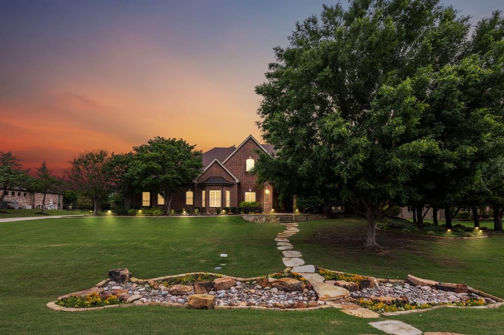 Gorgeous 5 bedroom Paul Taylor built custom home with one owner on a spacious one acre lot in highly sought after Lovejoy ISD. Wonderful curb appeal with large covered front porch. Elegant entry with spacious dining room, wood flooring & private executive study. Large family room with stone fireplace opens up nicely to kitchen & second dining area. Chef's kitchen features bar area, center work island, tons of counter & cabinet space, stainless steel appliances, double oven, gas cooktop & walk-in pantry. Breakfast nook overlooks the backyard & has built-in service & storage areas. Game room features wet bar, fireplace & plenty of room for a pool table PLUS separate media room off the bonus room. Primary suite has bay window seating area, vaulted ceiling, bath features dual vanities with a seated vanity area, oversized walk-in shower, soaking tub, linen storage & huge walk-in closet. 4 additional bedrooms & 4 full additional baths. Backyard oasis includes pool & spa with waterfall feature, extensive covered back porch, fire pit, separate cabana with fireplace & outdoor kitchen including sink, bar area & grill. One acre lot with 4 car garage. High end finishes including plantation shutters, designer lighting, casings & mouldings.