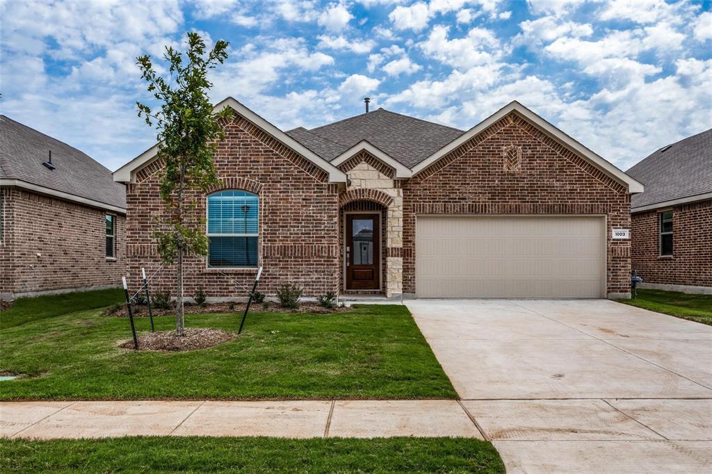 Introducing a stunning new 3-bedroom, 2-bathroom house! This home design offers convenient single-floor living with a modern and spacious layout. The open-concept living area combines a Great Room, a stylish kitchen, and a cozy breakfast nook that leads to a covered patio. Abundant natural light fills the living room through its large windows, creating a bright and inviting atmosphere. Luxurious vinyl flooring extends throughout the entire living area, adding a touch of elegance. The kitchen is truly impressive, featuring quartz countertops, stainless steel appliances, and a generously sized island with seating, perfect for meal preparation and entertaining guests. Location-wise, this property is unbeatable, providing quick and easy access to highway 380, ensuring convenient commuting and travel options. Residents will find supermarkets, retail shops, and restaurants within close proximity, making everyday errands and dining experiences effortless and accessible. Come & see this today!!!