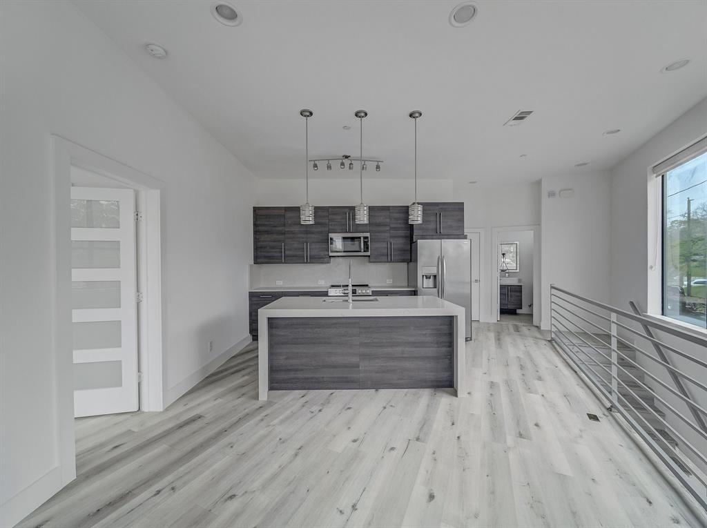 Experience the Bishop Arts lifestyle! Located 10 minutes south of downtown, the Oak Cliff-Bishop Arts District is home to boutiques, restaurants, coffee shops & galleries. Explore the outdoors by visiting Dallas trails, parks & gardens. Lake Cliff Park is a short distance from unit! Unit 101 is a modern 2 level townhome with 1,208 square feet. Private entry with Alarm security system & Ring Camera Door system, Quartz countertops & backsplash, SS appliances & 1 car garage (private entry). Included in the unit is a washer & dryer, refrigerator, microwave & separate beverage fridge. The waterfall quartz island & quartz backsplash make this kitchen an entertainer's dream. The open concept living, dining area also includes a half bath & balcony. 1 bedrooms with 1 full baths and 1 half bath are located on the 2nd level which includes the washer & dryer utility room. The downstairs has a bonus living space with a beverage fridge and full bath. Perfect for a guest room (It does have a small closet), office or secondary living area. Credit Requirements 620+ Income requirement 2x the rent Water is included with $2100 monthly rent
