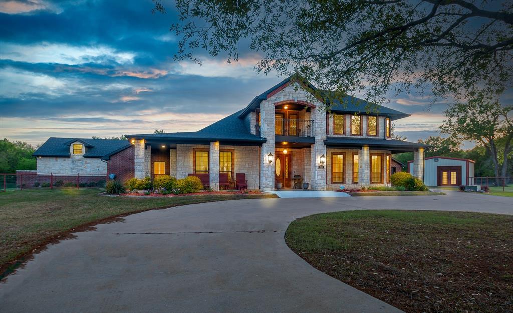 Welcome to 1041 N. Munson, a custom-built estate stretching just under 4900 sq ft and situated on more than four fenced acres. This property is adorned with mature trees and a serene pond, all set against the backdrop of a beautiful woodland setting. Driving down the circular drive, you are greeted by an impressive front porch. Inside, there is a sense of elegance, showcased by 3,000 square feet of stunning hardwood floors with intricate inlays in the foyer. The home office and large formal dining feature exquisite built-ins, both conveying luxury and charm. The great room is a relaxation hub for family and friends while gathering around the fireplace, enhanced by one of the finest sound systems available. This space seamlessly transitions into an open kitchen equipped with top-of-the-line appliances, sophisticated finishes, and beautiful cabinetry, complemented by the casual dining area with built ins and wine fridge. The main level's sense of grandeur and elegance includes approx. 800 sq ft Primary owner's retreat with a spa-like bath and a vast walk-in custom closet. Also, on the main floor is a well-appointed laundry room with lots of cabinet and counter space, a versatile crafts room, a full guest bath, and three additional bedrooms with another full bath. Upstairs is a spacious game room with a bar, a full bath, and a sizeable fifth bedroom with a balcony. Beyond the main residence, the property offers an insulated 2,400 sq. ft. (40x60) workshop with full bath, an extra-tall ceiling and a 20x60 overhang for additional storage or workspace. The garage and shop together offer more than 6 car covered parking. There is another 20x20 building used as a gym, while a charming treehouse is perfect for children and grandchildren to enjoy. Finally, the property's large pond, with fish, adds to the outdoors' allure, offering a tranquil retreat within this magnificent estate. Roof and gutters replaced, and exterior painted in 2023. This home seamlessly blends luxury,