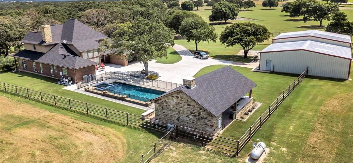 Beautiful 4 bedroom 3.5 bath home on 40 acres. Boyd ISD. Short drive to DFW airport and metroplex. Enjoy the incredible views from the large outdoor kitchen and pool area. Other great features include large shop, gated entrance, 1200 sq ft guest house, an outdoor fireplace, and a restroom in the outdoor kitchen area. There are two water wells on site and a sprinkler system. The interior has hard wood floors and big windows throughout the entire house. Cozy up in the living room by the fireplace while looking out at the beautiful pasture with 2 tanks.