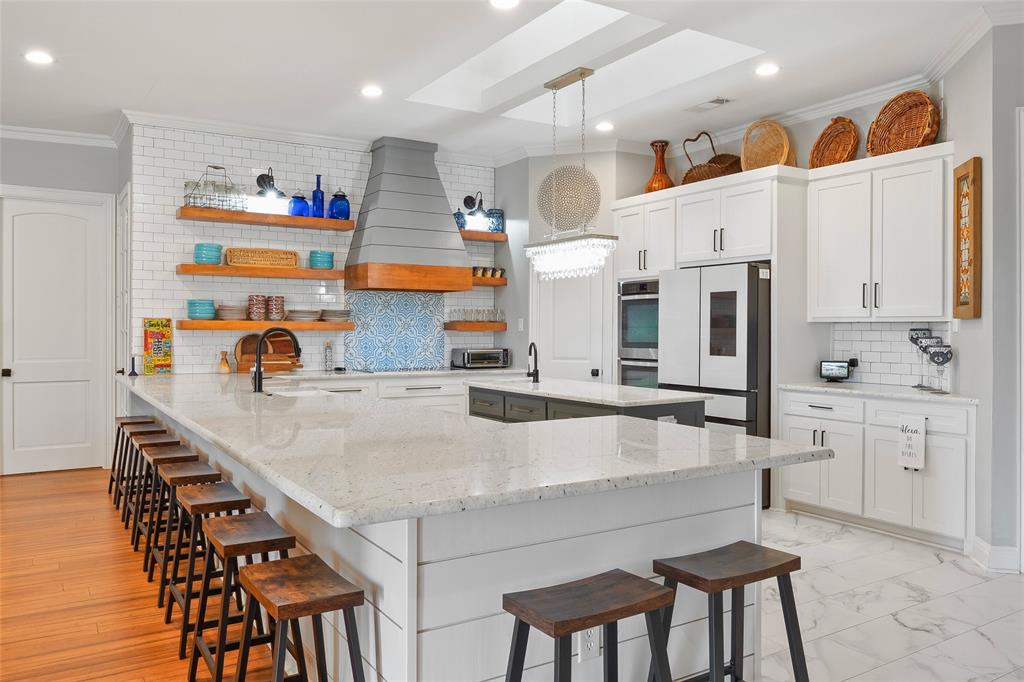 Discover luxurious living in this Texas sized executive home nestled on 4.88 acres. Open kitchen features a skylight, updated with floating shelves, shiplap vent hood, tile feature backsplash, Shaker cabinets with soft close hardware, farm sink & huge granite bar that seats 10! Opens to family room, private office with French doors & downstairs secondary bedrooms. HUGE master suite has private living area with a beautiful shiplap fireplace & lots of natural light. Truly elegant master bath features soaking tub and walk-in shower, separate vanities with lighted spa mirrors, heated towel rack and don’t miss the double closets! Second floor features a large media room with projector screen ,built-in speakers wired for surround sound & custom lighting; two large bedrooms with walk in closets & private bathroom also upstairs. The third downstairs living area would be great for a game room or convert to mother-in-law suite, studio or music room. Huge backyard with flagstone patio, fire pit & BBQ has room for a pool, shop, and so much more! Zoned for Heritage HS, no city taxes. Heritage HS. Bring your horses or other livestock! Owner agent