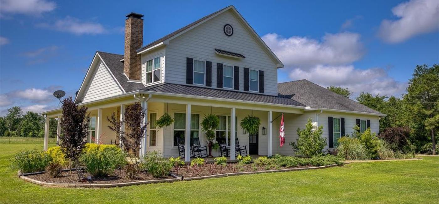Escape to the county and experience the charm of this beautiful farmhouse style home built by Harris Building Company set on 40+ acres. With 3 bedrooms and 2.5 baths, the home features a generous layout with plenty of room for family living. The cozy living areas are filled with charm, featuring large windows to let in plenty of natural light, shiplap walls, woodburning fireplace and a warm, inviting atmosphere. The open concept kitchen is the heart of the home offering ample counter space, premium appliances (dual fuel range), a charming farmhouse style sink, beautiful wood accents and a large island for family meals or entertaining. Step outside to experience the views & abundant outdoor space - perfect for farming, livestock or simply enjoying nature. The property also includes a barn and small pond. Dreaming of a home with character and charm, this is it!