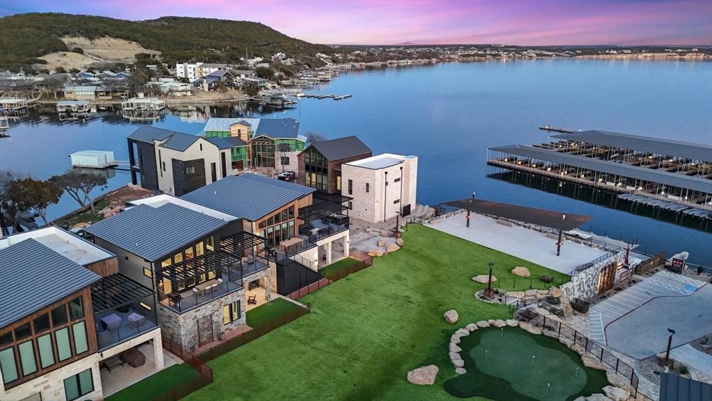 Lakefront Luxury Villa in Juniper Ridge Experience unparalleled lakefront luxury with this stunning 5-bedroom, 4.5-bath villa nestled in the prestigious Juniper Ridge community on Possum Kingdom Lake. This gem offers breathtaking water views and is located directly across from the neighborhood easement to the water and neighborhood dock. Step inside to discover wood-tone ceramic tile flooring that seamlessly flows throughout the open-concept living spaces. The gourmet kitchen is a chef's dream, featuring sleek quartz waterfall countertops, a spacious kitchen island, and commercial-grade appliances. Abundant natural light pours in through expansive windows, framing picturesque views of the lake. Three expansive outdoor patios provide the perfect setting for entertaining or simply soaking in the breathtaking sunsets. The private, fenced yard is beautifully turfed, offering a low-maintenance outdoor oasis. Juniper Ridge boasts an array of exceptional amenities, including a marina, waterfront pool, firepit, putting green, and fishing dock. Conveniently located near grocery stores and restaurants, this property is also approved for short-term rentals, making it an excellent investment opportunity. This home is currently a short-term rental with bookings in place that can be taken over by the buyer. Offered fully furnished, this villa is ready for you to experience the ultimate lake life.