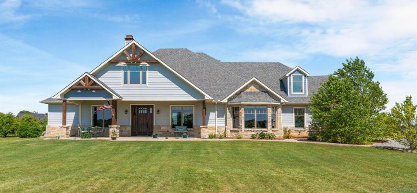 Stunning Custom Built craftsman Estate built in 2018 with Breathtaking Views and a Versatile barndominium with workshop! Welcome to your dream property, with two homes on the 2.5 acres. Whether you are looking for guest accommodations, multi generational living, or an income producing opportunity, this second structure offers endless potential. The main residence is a 1.5 story home with 3 bedrooms down and one bedroom up with full bath. The barndo is a residence all of its own with 3 bedrooms and 3 bathrooms. This meticulously craftsman style home offers the perfect blend of luxury, functionality all set against panoramic sunrise and sunset views with an expansive front porch and in back, an outdoor living area with kitchen and stone fireplace. The main residence is an energy efficient 4 bedroom, 4 bath masterpiece, thoughtfully constructed with spray foam insulation and low E windows to ensure year round comfort and savings. The interior has custom finishes throughout, from warm woodwork including beams, custom mantle, extensive millwork throughout the home to designer lighting. The heart of the home is a chef's dream kitchen, equipped with a gas range, double ovens, convection microwave, commercial ice maker in bar, & built in coffee maker in a spacious chef's pantry with a serving bar. The island is large with storage. Handsome soapstone countertops in kitchen match the surround to the fireplace. The primary bath is ultra luxurious with a copper nickel freestanding soaking tub, custom cabinetry, granite counter tops, lovely walk in shower with 3 body sprays. Adding tremendous value and versatility, the property also includes a separate 1400 square foot barndo 1400 square ft. workshop. Don't miss your chance to own this one of a kind estate that perfectly balances elegance, comfort and practicality. Immaculate! See supplements for list of features for main residence and barndo. This home also has a chicken coup & raised container gardens along with fruit trees.