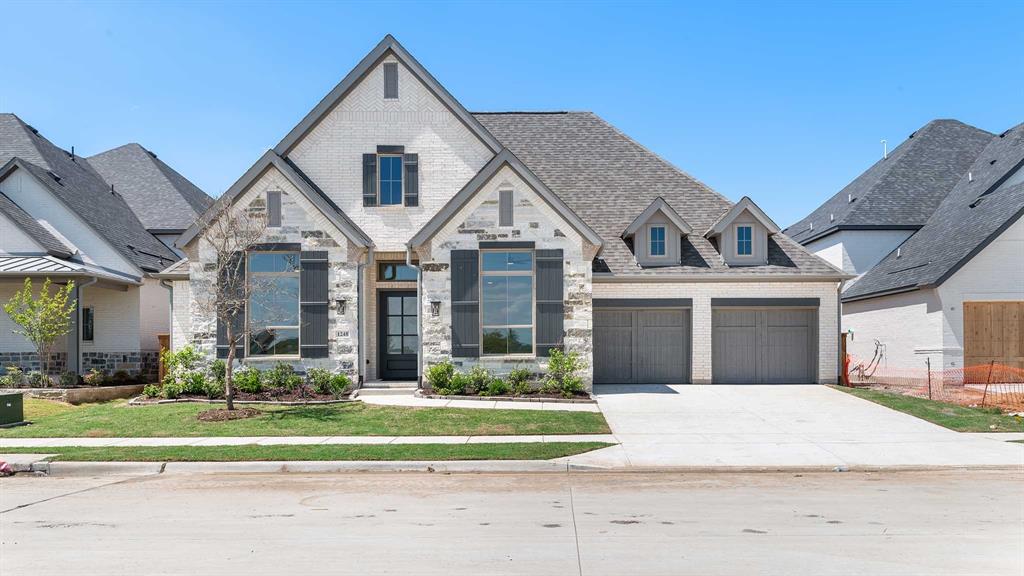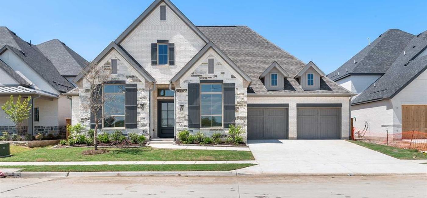 Welcoming entryway with 12-foot ceilings leads into spacious family room with fireplace and a sliding glass door. Dining area flows into island kitchen with built-in seating space and walk-in pantry. Large game room with French door entry just off the family room. Primary bedroom with three large windows. Primary bath includes dual vanities, a freestanding tub, separate glass enclosed shower, linen closet, and two walk-in closets. All secondary bedrooms are guest suites with walk-in closets. Additional linen closets, powder room, and utility room completes this spacious design. Covered backyard patio. Mud room. Three-car garage.