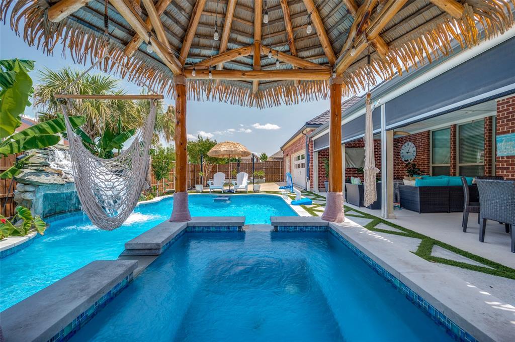 PRICE TO SELL! MOTIVATED SELLER! Stunning Brick Elevation with Exceptional Features & Backyard Oasis! This exquisite 6-bedroom, 4 bathroom home is designed for luxurious living, offering an impressive brick elevation and a spacious backyard retreat. Inside, you will find countless upgrades, including a grand circular staircase, a butler’s pantry, soaring 18 foot vaulted ceilings, and a striking floor to ceiling fireplace. The modern chefs kitchen is a masterpiece, boasting sleek finishes, ample storage, and a seamless flow into the open living spaces, all adorned with rich hardwood floors. Two downstairs bedrooms feature ensuite baths, with one offering the flexibility to be a private study. Entertainment lovers will appreciate the expansive game room and a fully equipped media room with surround sound. Smart energy saving features, including a smart thermostat and a tankless water heater, Culligan water softener and RO drinking system for the house add convenience and efficiency. Step outside to your private backyard oasis, featuring an amazing salt water pool with a fast lane pro system, a covered spa hot tub, and a tranquil waterfall. Two separate outdoor entertainment areas provide the perfect setting for gatherings. The garage is upgraded with a durable epoxy-coated floor, an electric vehicle charging port, and a convenient electric attic lift with just the push of a button, effortlessly store boxes in the attic with ease! Nestled in a prime location, this home offers easy access to shopping, dining, major travel routes, and the nearby Skate City Park is at walkable distance! Don't miss your chance to own this exceptional home and make it your own!! Schedule your private tour today!