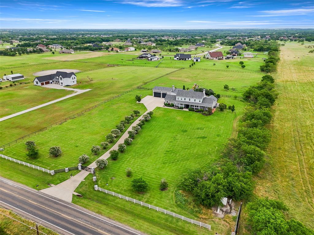 Experience this breathtaking Modern Farmhouse Custom Home sitting on spacious 5 acres, offering 6 bedrooms, 5.5 baths, and 4,706 sq. ft., situated in Prestigious High Point Ranch. This home designed for comfort and luxury living, features gated entry with gorgeous curb appeal, open floor plan, 10ft ceilings and premium finishes. Stunning gourmet kitchen, a farmhouse sink, custom and decorative glass cabinetry, generous island and a chef's pantry. Charming adjacent breakfast nook. Kitchen and breakfast nook are ideally open to the huge living room with stone fireplace and lovely hardwood floors. The large study is conveniently off the entry and features built-ins. A lavish primary suite is a private retreat with a spa like bath and walk-in double shower, heated floors, dual sinks, makeup vanity, decorative linen cabinet and spacious walk-in closet. The second floor features an ample family room with a half bath for guests. This well-designed Jack and Jill bathroom connects two bedrooms, offering easy access from both sides. Also the primary home includes an expansive en-suite bedroom to provide comfort for family and guests. Guest-Pool house located in de-attached structure. Entertain with style with a fully equipped outdoor kitchen. Enjoy a peaceful outdoor living on a full front and back porch, lounging covered patio, a beautifully landscaped backyard, two large fire pits and stunning pool and spa. Complete with a climate controlled three car garage and smart home feature. High Point Ranch Community features a playground, greenbelt walking trails with lake for all your fishing and kayaking needs. Don't forget to bring your horses. Schedule a private tour today!