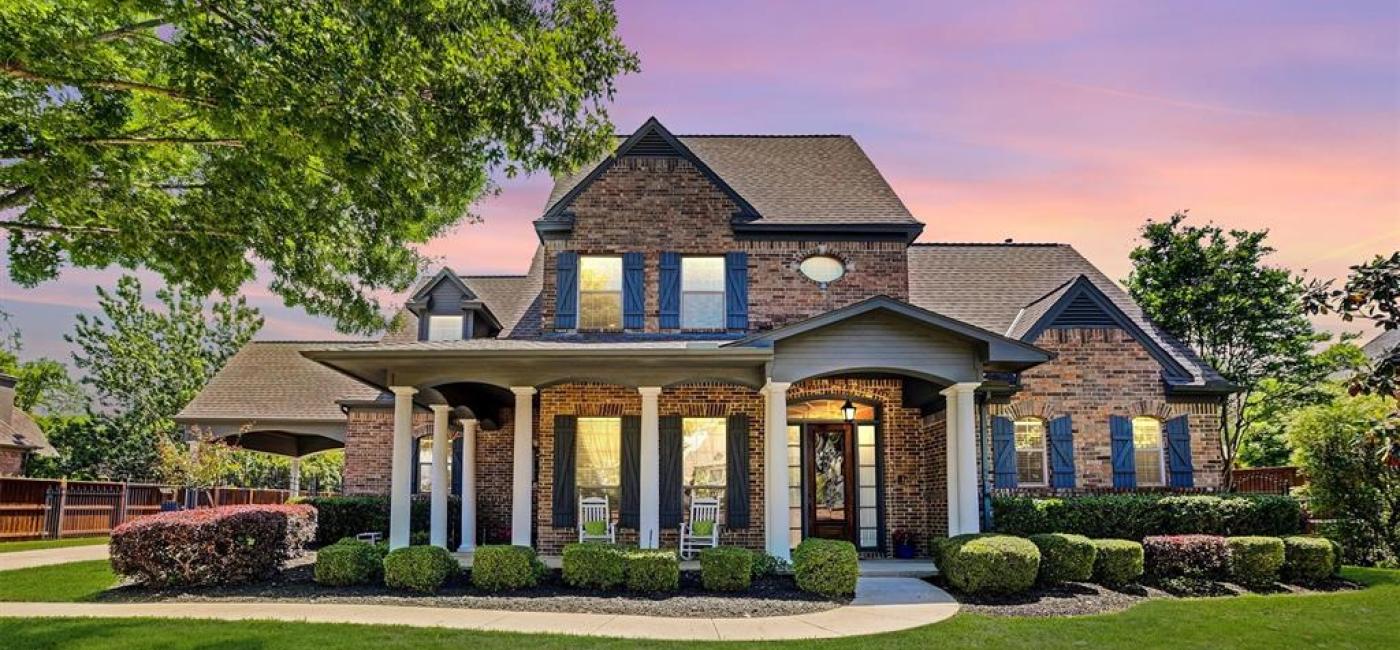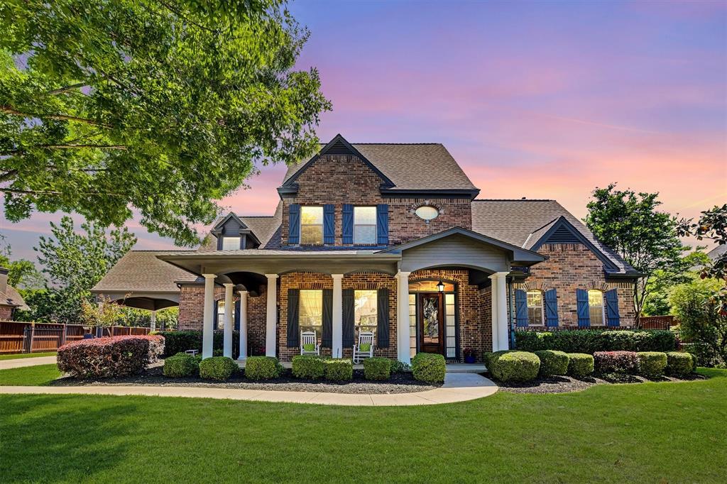 Step into classic elegance with this stunning Southern Colonial home in coveted Caldwells Creek, nestled on a beautifully landscaped lot shaded by mature trees. This stately residence features a wrap-around front porch framed with columns perfect for relaxing in rockers sipping morning coffee. Inside, you'll find soaring ceilings with a wall of windows allowing natural light, hand scraped hardwood floors, multiple fireplaces and a double staircase. Welcoming foyer leads to formal living and dining spaces ideal for entertaining, while the kitchen boasts granite countertops, double oven, breakfast bar, and a cozy breakfast nook overlooking the backyard oasis. Two dedicated areas while working from home...a true study with built-in bookshelves and desk, as well as a pocket office nook workspace. The spacious primary suite offers a private retreat with a sitting area, jacuzzi bath, sleek glass enclosed shower, and walk-in closet. Downstairs secondary bedroom and neighboring guest bath provides comfort for family or friends. Out back, an inviting flagstone patio opens to a lagoon style heatable salt water pool & spa with a stone waterfall and beach-like pool entry—perfect for summer gatherings. Extended side entry gated driveway showcases porte cochere and 3 car garage. Caldwells Creek is conveniently situated near the Cotton Belt Trail for endless walks and bike rides. The community amenities include walking paths, jogging trails, and 9 acres of catch and release ponds. Outdoor enthusiasts will appreciate the tranquil atmosphere the neighborhood provides. With classic Southern charm this well maintained home is a rare blend of tradition and comfort.