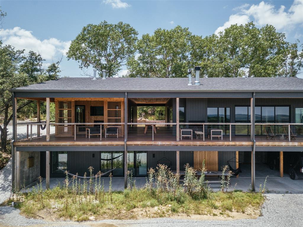Perched atop the rolling hills of North Texas, 1485 Autumn Valley is a stunning weekend retreat that harmonizes nature, design, and tranquility. Designed by architect Paul Merrill, this extraordinary dogtrot-style home embraces an effortless indoor-outdoor flow, with a breezeway uniting two distinct structures beneath a single roof. Floor-to-ceiling windows frame breathtaking treetop views, transforming every sunrise into a masterpiece and every evening into a peaceful escape. A sprawling 1,500-square-foot raised deck, crafted from durable Cali bamboo, surrounds the home, offering multiple sitting areas, a wood-burning fireplace, a hammock, and a screened-in porch with a gas fireplace and television. A gentle waterfall at the entrance and a striking eight-foot limestone rock at the property’s edge create a dramatic yet serene welcome. Inside, the sunken living area features a three-sided fireplace, seamlessly connecting to the sitting room and breezeway for a truly immersive outdoor connection. The kitchen and butler’s pantry are thoughtfully designed with ample storage, high-end appliances, and exquisite limestone and travertine countertops, blending function with refined beauty. The primary suite is a private sanctuary, complete with a fireplace, smart toilet, towel warmer, and an outdoor shower for an invigorating experience amid nature. Two additional bedrooms, including a bunk room, share a Jack-and-Jill bath, each space designed for comfort and simplicity. Set on five scenic acres, this architectural gem embodies the wabi-sabi philosophy—celebrating authenticity, natural materials, and the beauty of imperfection. Elevated above the landscape with constant breezes and panoramic vistas, this Bluff Dale retreat offers an unparalleled fusion of elegance and serenity.