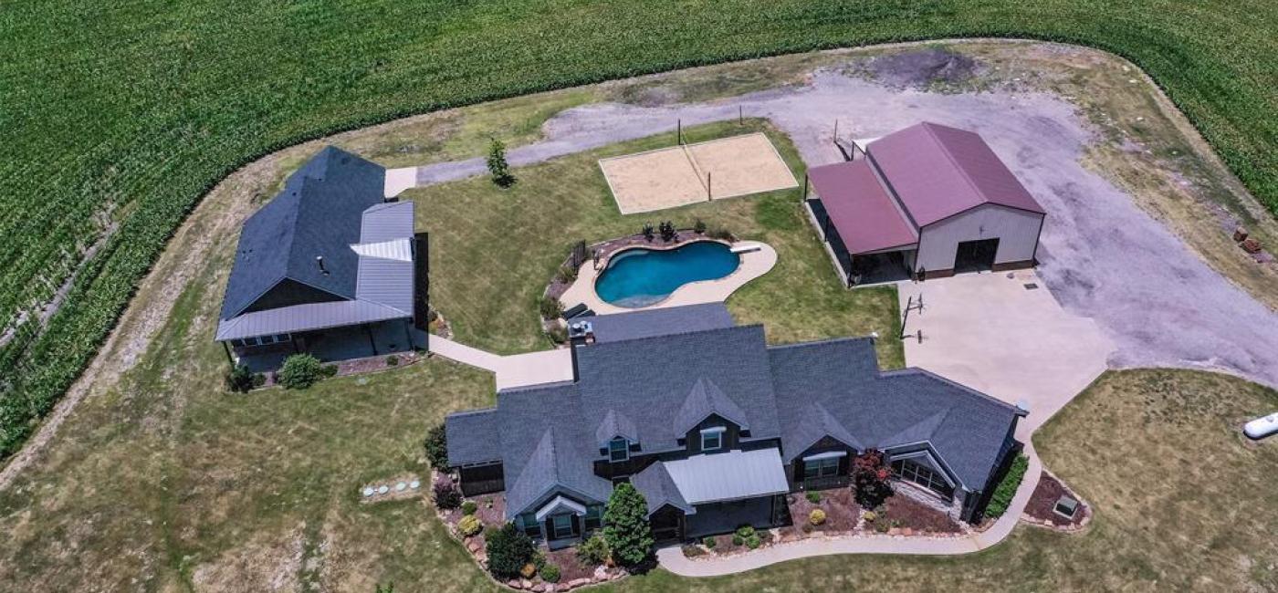 Prepare to be captivated by this stunning 2,668 sf custom-built home, perfectly complemented by a 1,255 sf guest house, a 1,200 sf shop and barn, all set on a peaceful 10-acre estate. Behind the gated entry, the main home welcomes you with rich hand-scraped wood floors and exceptional attention to detail. The chef-inspired kitchen boasts custom designer cabinetry, a farmhouse sink, oversized island with prep sink, breakfast bar, and gleaming granite countertops, a true culinary dream. The open concept living room impresses with soaring ceilings, a dramatic two-story stone fireplace, and an abundance of natural light. A separate dining room provides an elegant space for entertaining. Retreat to the luxurious primary suite, featuring a spa-like ensuite with dual vanities, a garden tub, separate shower, and a generous walk-in closet. Three additional spacious bedrooms, including two downstairs plus an upstairs living area and media room offer plenty of space for family or guests. The fully equipped guest house mirrors the quality of the main home, with a modern kitchen, cozy living room, and a private master suite. Ideal for visitors or multigenerational living. Step outside to your own private resort: an in-ground pool, expansive patio, sand volleyball court, outdoor wood-burning fireplace, built-in grill and sink, perfect for hosting unforgettable gatherings. Whether you're looking for space, serenity, or style. This one-of-a-kind property truly has it all. Love these homes, but looking for more land? See separate listing for custom homes, shop, barn and 54-acres. MLS 21155583