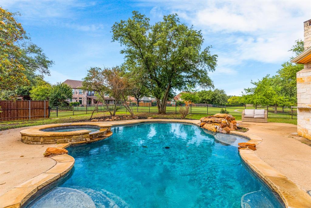 INCREDIBLE BUY in one of the most attractive neighborhoods in McKinney! Price BELOW Tax Assessed Value, an amazing price per square foot! Your summer staycation is here in Stonebridge Ranch's Newport Village-Wellington Point. Day or night, enjoy the waterfall swimming pool-spa, outdoor living, fireplace & grill + no neighbors behind! North facing & located on a .40 acre greenbelt lot with views of a waterfall pond from your backyard. Nearly 5500 sqft of comfort with a very large primary & guest bedroom on the first floor + a handsome study with a wall of built-ins & 2 living-dining areas. Three more bedrooms up + a big gameroom & fully equipped home theater. Panoramic balcony views off the gameroom too! You'll appreciate the luxury detail--extensive handscraped hardwoods & moldings, plantation shutters, 3 fireplaces, high ceilings, sweeping staircase, extra large chef's kitchen with tons of storage! A great floorplan for entertaining, including a corner stone fireplace, wet bar & entertainment center built-ins in the family room or choose to relax in the formal living room centered around the double-stacked fireplace. For those who admire a fabulous kitchen this one has it all ~ extensive granite countertops & cabinet storage, commercial grade stainless appliances that includes double ovens & a recently replaced built-in refrigerator! More recent updates: 3 AC units in the last 5 years, 2 water heaters, 2 upstairs bathrooms remodeled, garage door & carpet replaced.. just to name a few! A spacious laundry room + side entry 3-car garage top it off! Zoned to outstanding schools nearby too. Residents love the Stonebridge Ranch amenities: swimming pools, parks, playgrounds, tennis & pickleball, membership golf at very close Stonebridge Country Club. Available for immediate move-in!