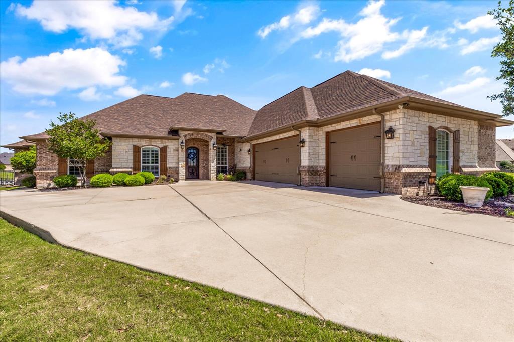 Lake Granbury living at its finest! Exquisite Couto built home on a wide canal with view of cove and 132' of waterfront gated community of The Island. Home features 4 bed, 3 baths with a study, a huge informal dining area and 3 car garage. Upgrades galore from the custom crown molding, custom maple cabinets throughout, plantation shutters, 42 inch hallways, 36 inch doorways & solid core doors! Gas fireplace inside, wood burning fireplace outside, 2 tankless hot water heaters and wall of windows overlooking the lake. Entertain with ease in the spacious chef's kitchen, large island, double oven, Professional gas cooktop, walk in pantry. Master bedroom has hardwood floors, & ensuite with separate vanities, jetted tub, walk in shower, and Texas Tech safe room walk in closet. The secondary bedrooms are spacious with lots of privacy. The fourth bedroom could be used as a flex space, media room or 2nd master suite. No carpet anywhere in the house, wood floors & real travertine tile. The 3 car garage is oversized and sure to fit any truck out there! The spacious back yard is big enough for a pool and the back patio has no west sun in the evening! A boat dock auto cover is a luxury few on Lake Granbury have. HUGE bonus, the seawall property was completely replaced prior to the house being built.