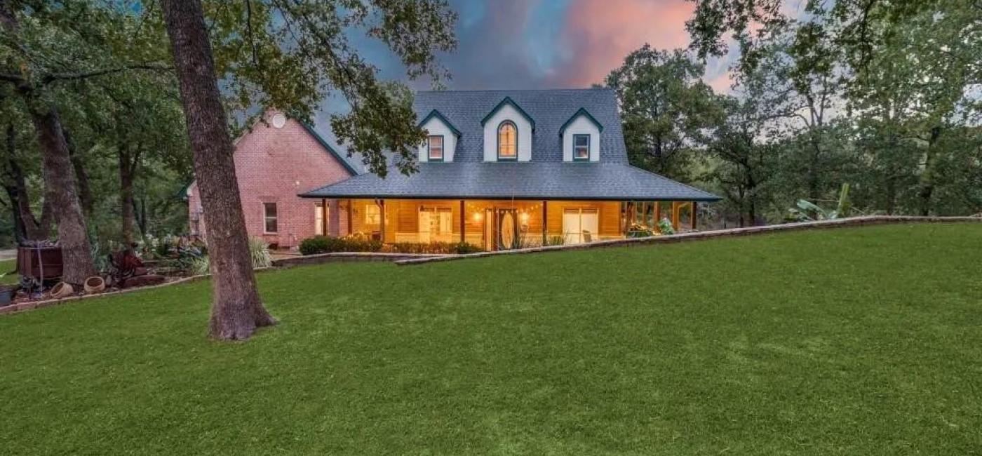 The most wonderful ranch resort home that is perfectly situated on just shy of 22 acres. Exploring this property is such a delight. Every inch of this custom built home shows off the craftsmanship that went into the details. Modern living and open floor plan for entertaining family and friends with a gourmet kitchen featuring high end commercial grade appliances, eat at kitchen island, granite countertops, loads of cabinet storage. Vaulted ceilings in great room w cozy fireplace. Luxurious and private primary w ensuite bath. Large laundry, oversized garage. Enough about the gorgeous home lets talk about the grounds.Wrap around porch with emphasis on outdoor and backyard enjoyment.HUGE deck w fireplace overlooks magnificent pond, professionally landscaped, just out the front door is a pretty and restfull water feature. Guest home has full kitchen w large bath,workshop, greenhouse,Covered RV parking storage shed.Rock Creek Resort Golf Club truly in your backyard.Lake Texoma minutes away.