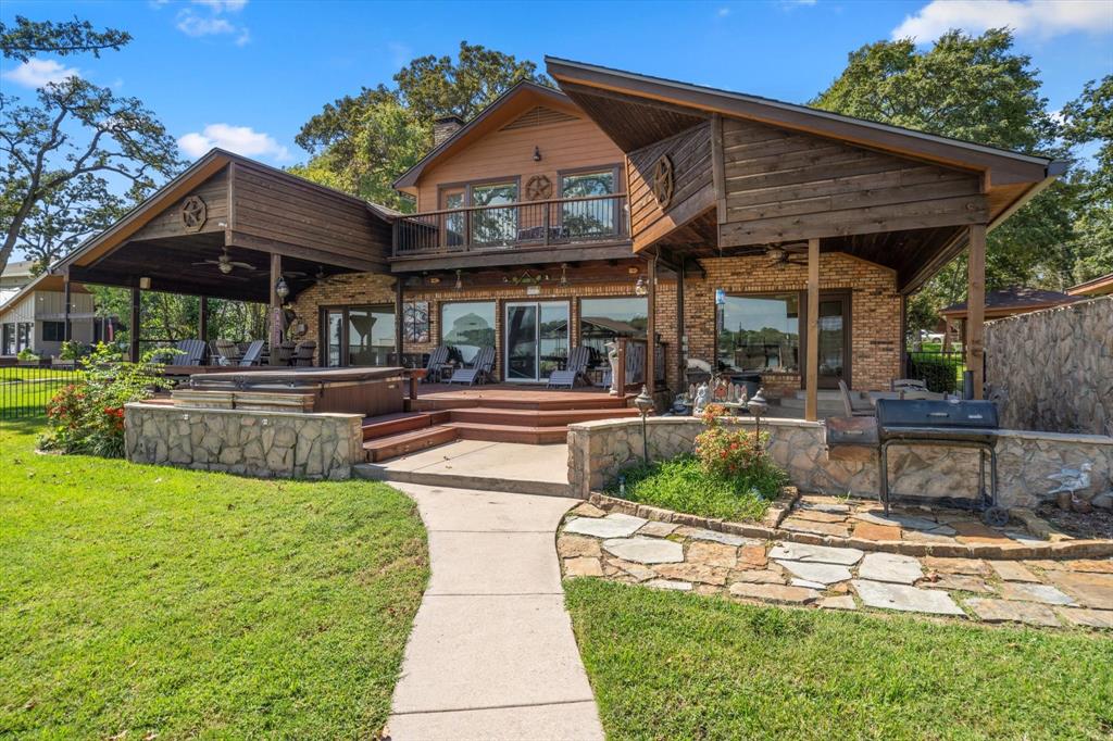 Recently reduced for Lakefront luxury with room for everyone in Deer Island Estates, Cedar Creek Lake! This incredible home truly has it all, whether you're seeking a peaceful lakeside retreat, the ultimate entertaining space, or a full-time waterfront lifestyle. Nestled in one of Cedar Creek Lake’s most sought after neighborhoods, Deer Island Estates, this spacious property offers stunning deep open water views and wonderful entertaining space. Enjoy quiet mornings or vibrant evenings from your patio or hot tub. The custom boathouse is built for both fun and function, featuring four PWC lifts with automatic power covers, plus a low maintenance aluminum upper deck perfect for sunbathing. The home boasts five generous bedrooms and four full bathrooms, with granite countertops throughout. Downstairs: primary suite offers breathtaking sunrises with eastern-facing water views, two large guest bedrooms that can be converted to fun bunk, games, or flex rooms, and a full guest bathroom. Upstairs: two guest bedrooms and a full bath provide additional privacy for guests or family. Step outside to a spacious covered back porch that extends your living area, complete with hot tub and lakeside fire pit. Additional features include a fireplace, fully fenced backyard, ambient outdoor lighting, and an oversized two-car garage. Whether you're entertaining, relaxing, or making memories, this home is your gateway to lakefront living at its finest.