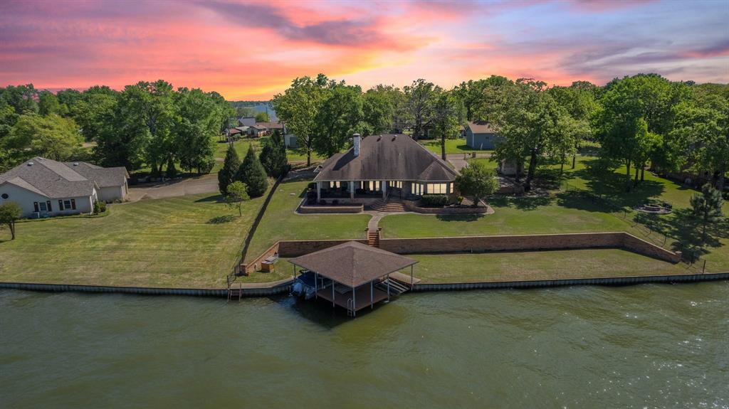 This one-of-a-kind custom home is nestled in the highly sought-after Enclave on Cedar Creek Lake, offering a perfect blend of luxury, comfort, and functionality in a serene waterfront setting. Ideally positioned on a deep water cove with a sweeping big water view, the backyard faces east, allowing you to enjoy peaceful sunrises and shaded afternoons with gentle lake breezes—a rare and desirable orientation for year-round outdoor enjoyment. Designed with attention to detail, this 4-bedroom, 2-bathroom home features a thoughtful split floor plan and a 3-car garage, providing both privacy and practicality. Inside, you’ll find beautiful wood cabinetry, crown molding, and built-ins throughout, including a cozy dining nook with bench seating and extra storage. The kitchen is a true highlight, offering granite countertops, a double oven, a stainless steel sink with a commercial-style faucet, and a spacious layout that opens seamlessly to the living areas—ideal for entertaining guests or enjoying family time. Additional interior touches include a mudroom with storage cubbies, indirect lighting that adds warmth and ambiance, and a luxurious primary suite featuring a spa-style steam shower. The open-concept living space flows effortlessly to the expansive outdoor lanai, measuring approximately 65 by 25 feet, where you’ll find a stunning stone wood-burning fireplace, multiple seating areas, and a ceiling fan for added comfort. This inviting space is perfect for dining al fresco, watching the game, or simply taking in the tranquil lake views. The exterior is just as impressive, boasting approximately 165 feet of prime waterfront protected by a steel seawall and massive retaining wall. Enjoy the convenience of a covered boat slip and dual jet ski lifts, all operated by GEM remotes. Multiple ladders provide easy water access for swimming or launching paddleboards, while a lake-fed irrigation system keeps the yard lush and green.