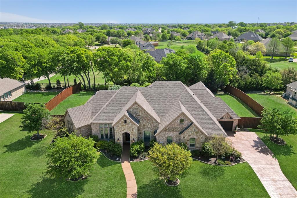 Tucked away in the heart of prestigious Prosper, this breathtaking one-story estate provides the perfect blend of sophisticated elegance and relaxed luxury living. Set on a .57 acre lot, this property is more than just a home, it’s a private retreat, designed for those who crave both convenience and tranquility. From the moment you arrive, the home’s impressive curb appeal captivates with manicured landscaping and a stately brick and stone façade. The open-concept design is an entertainer’s dream, seamlessly flowing from the gourmet kitchen equipped with double ovens, pot filler, and an oversized island, into the expansive living area, where a corner stone fireplace and beamed ceiling set the scene for cozy nights. The primary suite is a sanctuary, tucked away for privacy with a spa-like bath featuring a soaking tub, an oversized shower, and a generous walk-in closet. Three additional bedrooms, each with spacious closets, ensure comfort for family and guests alike. The home office is offset from the main living areas, providing a quiet, distraction-free environment. Then there’s the enormous game-media room, the ultimate entertainment retreat, ideal for fun and relaxation. But the true magic happens outdoors. Step outside to relax in your own private oasis where a Claffey-built play pool and spa, complete with a tanning ledge and water features, invite you to unwind under the Texas sun. The expansive covered patio with outdoor kitchen and counter seating, sets the stage for al fresco dining, weekend barbecues, and endless summer nights. And there’s still plenty of yard for pets and play. Frontier Estates offers its residents a community pool + splash zone and lake. Located just minutes from top-rated Prosper ISD schools, town parks, and shopping & dining, this home offers the best of small-town charm with big-city convenience. If you’re searching for luxury, space, and an unparalleled lifestyle, welcome home. Roof (2025)