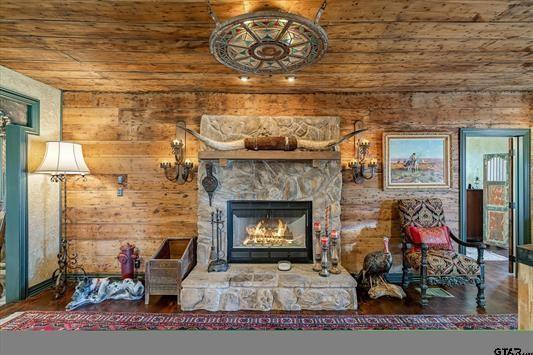 Welcome to this unique, one of kind cabin full of history, charm and exceptional craftsmanship nestled on 14.5 acres in Emory, Texas. The history of this home goes back to the 1890’s when it was first built. In the 1970’s it was moved to this property and remodeled. In 2017 the current owners bought it and completely rebuilt it it from the foundation up. The shiplap is original as well as some studs but everything else has been rebuilt to bring it back to life while keeping an historical 1800s feel. With over 2800sqft in the main home, there is plenty of room for all. The primary bedroom is downstairs, along with the second bedroom (or office). The third bedroom, reading area + a loft is upstairs and there are a total of two and half bathrooms, two living areas and a formal dining. With intricately handpainted metal ceilings, vintage metal crown molding, original shiplap, antique lighting, vintage stain glass windows and incredibly detailed tile work you will simply never find another home like this. A limestone pathway will bring you around the home to the stunning landscaping and porches. The Carriage House sits just a ways from the main home and while it’s the most gorgeous parking or covered area you’ve ever seen, it also has an amazing game room. RV Hook Up as well. This property is a perfect mix of pasture land and timber with a fully stocked pond. There is so much more to tell you about this property so we will just have to show you. Schedule your private tour today to come see how this historic home meets modern luxury and blends in the most beautiful way.