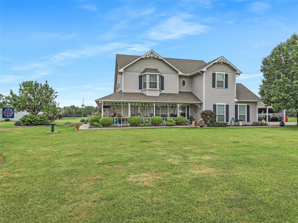 Lifestyle & virtual home tour video available upon request! The dream lake & farm life! Experience the best of country living with this dreamy two-story farmhouse nestled on just under 18 AG exempt, picturesque acres, a short 1 mile from Lake Bonham & Bois D'Ark Lake! From the moment you arrive, you’ll be drawn in by the inviting wrap-around porch complete with classic porch swings—perfect for morning coffee or evening sunsets. Inside, the home exudes warmth and rustic charm with a spacious eat-in kitchen, cozy wood-burning stove fireplace, 5 bedrooms, a dedicated office, and a formal dining room ideal for gatherings. Every detail has been thoughtfully designed to create a welcoming and functional living space. Step outside and discover a true homesteader’s dream: a well-appointed barn featuring four livestock stalls, a huge chicken coop (or fifth stall), storage closet, roll-up doors, fans, and efficient LED lighting—all highlighted by a stunning, one-of-a-kind barn quilt. The fenced pastures and seasonal pond offer ideal settings for livestock or simply enjoying the serene landscape. Even the family pups are pampered here, with their own dog house equipped with a window unit, doggy door, and fenced run. And for warm summer days, an above-ground pool offers the perfect spot to cool off and relax. This turn-key property isn’t just a home—it’s a lifestyle. Come see for yourself what makes this place so special. See transaction desk for more information on local attractions, things to do, upgrade list, survey & more! ***UP TO $5,000 LENDER CREDIT TOWARDS CLOSING COSTS!***