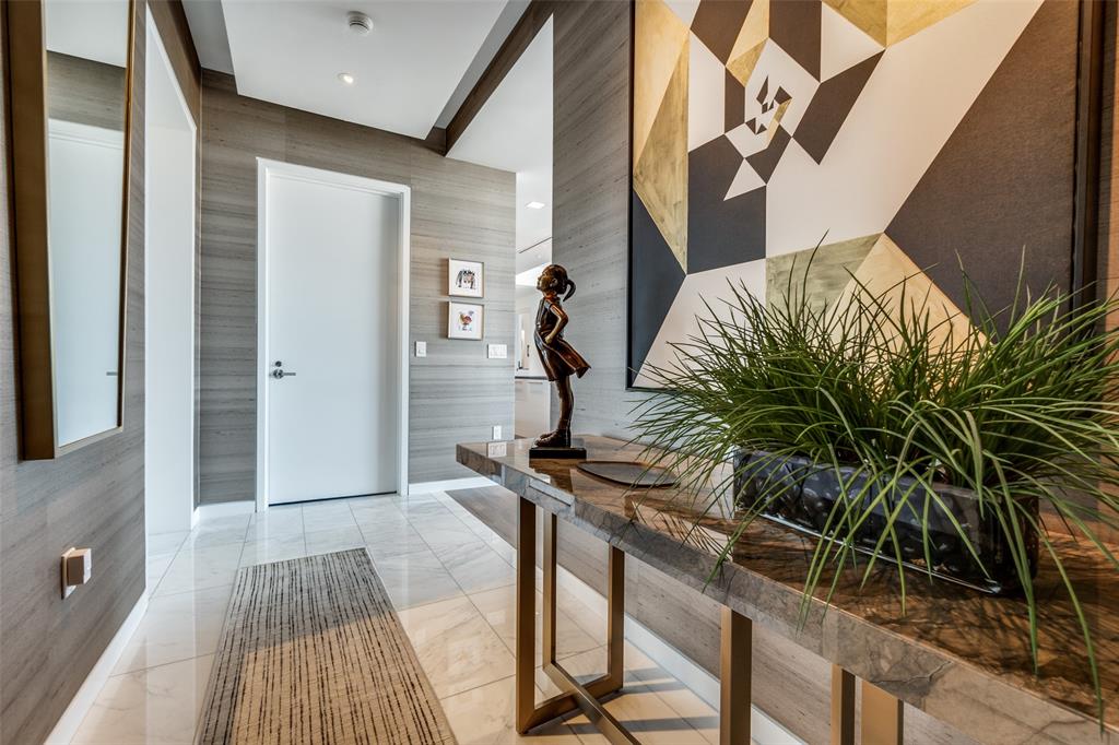 Freshly completed designer high end finishes throughout this jewel box home. A private elevator ride delivers you into a warm and inviting landing wrapped in custom wallpaper. This two bedroom home boasts upgraded lacquer cabinetry with rich basalt countertops, custom wall coverings, a fresh contemporary built in mirrored bar with floating shelves, abundant and substantial storage and closets. Gorgeous contemporary lighting. Upgraded carpets, fresh hardwoods and paint. The integrated utility room is not to be missed. Miele appliances, marble baths, private terrace, pool, spa, fitness center, guest suites and private dog park. Beautifully appointed details. Exceptional service is what our residents experience every day.