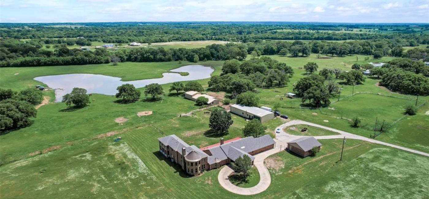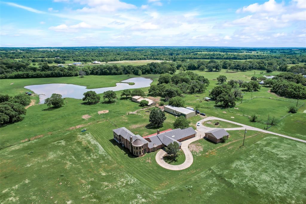 Unrivaled views with lifestyle of private luxury! Bring your horses to this picturesque 45+ acre ranch, just 45 min east of Dallas. Surrounded by ag exempt hay pasture with cross fencing, the stunning 5,228 sq ft custom home features extensive upgrades, open floorplan, vaulted ceilings, mudroom, hardwoods, new carpet, outdoor covered entertainment areas and 2 garages. Extravagant 2 story primary suite with cast stone fireplace, wet bar, dual walk in closets, and primary bath with 2 person full size jetted tub, walk in Smart shower, heated tile floor, and dual vanities. Upstairs features a loft, office with half bath, balcony, and enclosed sunroom, all showcasing spectacular views of the private lake. Large shop with 2 roll up doors, car lift, and a 1 bed, 1 bath guest house with full kitchen, and outdoor cattle chutes with scale. Large barn: 7 matted stalls (2 w heated auto waterers), 12x65 covered run in, hay storage, feed and tack room, 150x250 outdoor arena with roping chute. Stocked lake with dock, gazebo, shed and fountain. Schedule your visit to this stunning legacy ranch today!