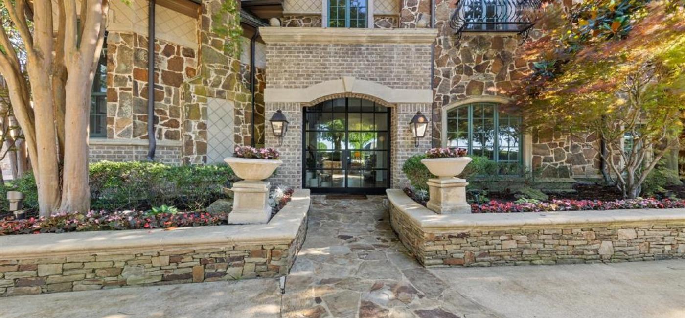 Experience timeless European elegance in this energy-efficient custom manor by Graduate Master Builder Rick McDonald, nestled on over an acre in the prestigious lakefront estate community of Terrabella on Lake Ray Hubbard. Surrounded by majestic oak and pecan trees with serene lake views, this 6,000+ sq ft masterpiece blends old-world charm with modern sophistication. A soaring beamed vaulted ceiling and Juliet balcony crown the grand family room, one of seven fireplaces found throughout the home. The flexible layout includes five spacious bedrooms, five full and two half baths, a private downstairs mother-in-law suite with full bath and its own utility room, a handsome office-library, game room, wet bar, and in-home theatre. The chef’s kitchen is both elegant and functional, featuring dual islands, premium appliances, a pot filler, and a walk-in pantry, seamlessly connected to the formal dining area and butler’s pantry. A custom wine cellar and built-in safe add to the home’s thoughtful amenities. One upstairs bedroom includes a charming loft, perfect as a playroom or study retreat. Outback takes you to a breathtaking covered outdoor living pavilion with fireplace, built-in grill, and dining space, framed by professional landscaping and a dramatic rock waterfall and river feature that creates a peaceful, resort-like setting. Additional highlights include a Porte Cochere, oversized utility room, European chimney pots, abundant storage, prewired sound system, and extensive millwork and custom cabinetry throughout. The primary suite offers a fireplace, spa-inspired bath, and a generous walk-in closet with custom shelving. Multiple zones of HVAC ensure year-round comfort, and energy-efficient construction provides lasting value. This exceptional home offers a rare blend of elegance, comfort, and inspired design just moments from Lake Ray Hubbard.