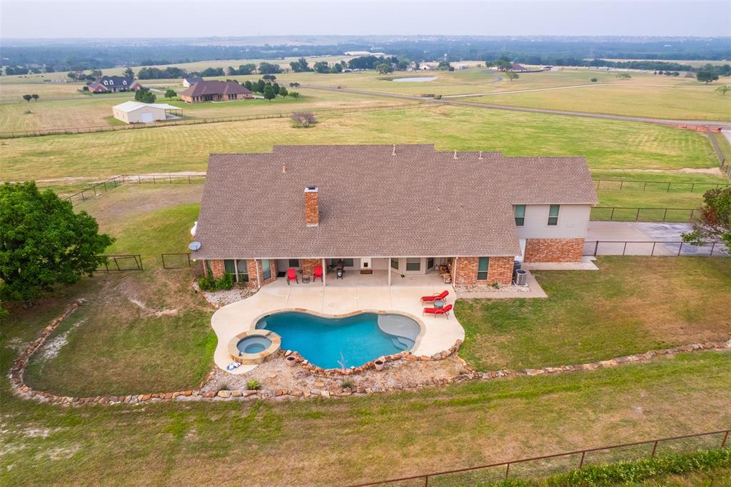 WOW! Huge $20k PRICE REDUCTION! Just qualified for land AG Exemption! VA Assumable Loan with 3.5% interest rate! No HOA, No city taxes, 2 living areas. Experience the grandeur of a Texas sunrise from the embrace of your expansive front porch, commanding the finest views in all of Aledo. This impeccable 5 bed, 4 bath home is on a cul-de-sac nestled on over 11 acres ensuring utmost privacy within the prestigious confines of the Ranches of Bear Creek. Discover granite countertops, exquisite cabinetry, soaring vaulted ceilings, 4 renovated bathrooms, a private office and a game room. Recent upgrades include a tankless water heater, new HVAC system on the 2nd level, new light fixtures and ceiling fans throughout and newer thermo-baric windows. Fully fenced and adorned with multiple pastures, water that runs to the pastures for water troughs and a generously-sized 30x40 shop. High speed internet access available. Strategically positioned just minutes away from Fort Worth, downtown Aledo and Weatherford, this haven provides the perfect blend of seclusion and accessibility, inviting you to relish in the finest aspects of country living.