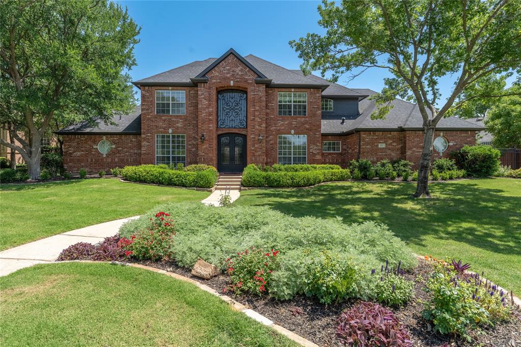 Nestled in the heart of Southlake, this beautiful home with a water view boasts over 4000 square feet and welcomes you with soaring ceilings, separated formal living and dining rooms, and French doors that open to the study. The gourmet island kitchen features white cabinets, stainless steel appliances, and a built in planning center. Adjacent to the kitchen, the expansive family room offers a cozy fireplace and panoramic views of the meticulously landscaped backyard and pebbletec diving pool. The primary suite is a private retreat with a spa-like bathroom that features a soaking tub, separate shower, and dual vanities. The second bedroom downstairs can be a multi purpose room as it has a murphy bed and has direct access to a recently updated bathroom. The upstairs features 2 additional bedroom, a media room, and a game room that can also be used as the fifth bedroom! And finally, paradise is waiting for you when you step outside the backdoor! Greeted instantly by a spacious, covered outdoor living area and kitchen, the sleek, modern diving pool awaits and features a diving rock, water features, and a tanning deck next to the pergola!