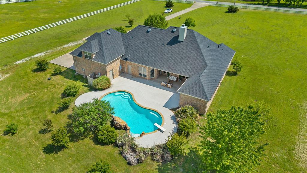 Discover the perfect fusion of elegance, functionality, and wide-open Texas charm with this exceptional estate, set on five low maintenance acres in the sought-after Gunter Independent School District—and best of all, no city property taxes. Recently updated with thoughtful attention to detail, this home welcomes you with refined finishes and expansive living spaces. A dedicated home office offers a quiet retreat for productivity, while the upstairs media and game room—complete with a conveying projector and screen—is ideal for entertaining or relaxing in style. Step outside to your own private backyard sanctuary, where a resort-style pool invites year-round enjoyment and effortless entertaining. Beyond the pool, a spacious 30' x 30' shop with electricity provides flexible space for hobbies, storage, or creative ventures—offering endless possibilities for car enthusiasts, makers, or those who simply appreciate a well-outfitted workspace. The surrounding community adds even more value, with access to several stocked fishing ponds and scenic picnic areas, giving you the benefits of a tranquil, amenity-rich neighborhood—all just moments from your own front door. And yes, the property is horse-friendly, offering ample space for your equestrian needs. Whether you're looking for peaceful country living or a luxury retreat with room to grow and roam, this property delivers on every level. Elegant, expansive, and effortlessly livable—this is the estate you’ve been waiting for.