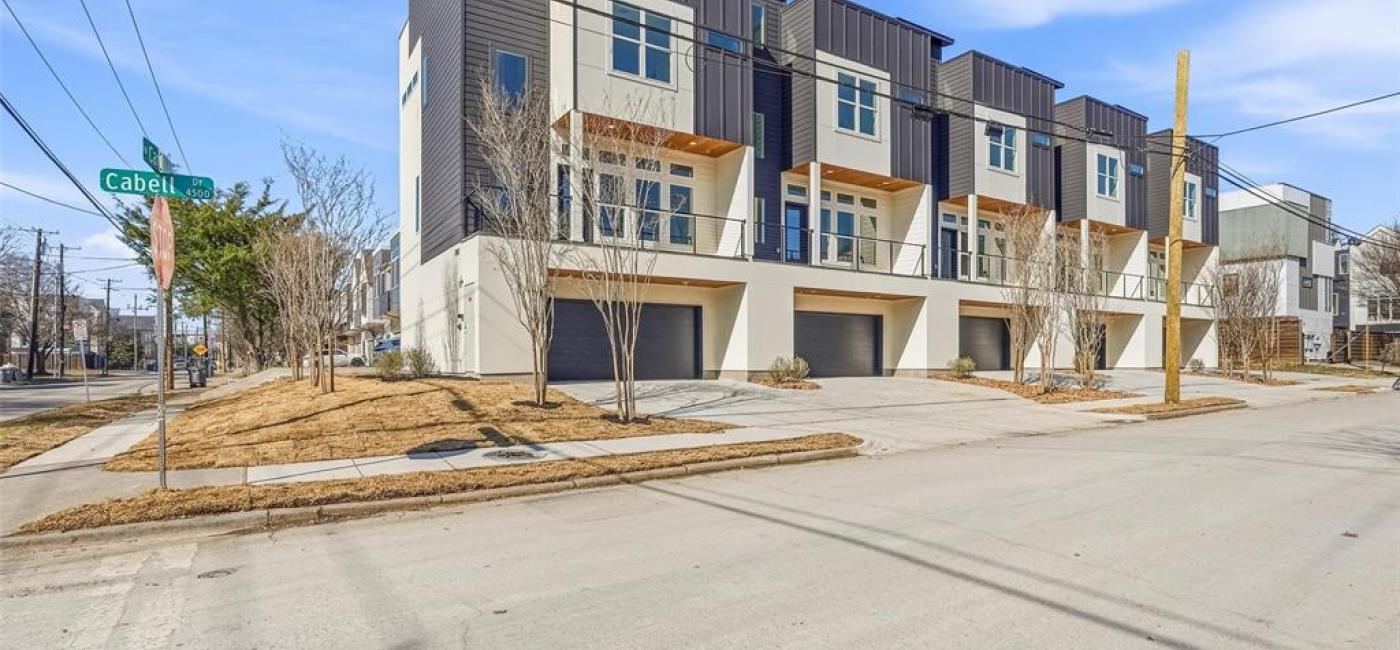 New Construction. This exclusive 5-unit Townhome Building is in the heart of Dallas, centrally located just minutes from the CBD, entertainment venues on Greenville Ave., Uptown, Knox-Henderson & Oak Lawn. The units will feature premium interior finishes, elevated ceilings, abundant natural lighting, approximately 1,840 SF of living space, 2 bedrooms, 3 baths, dedicated study or workspace, oversized EV ready 2-car garage large enough for an extended SUV, open concept kitchen, living & dining areas. Enjoy casual outdoor living with 2 large outdoor living areas which is a very rare feature in Dallas Townhomes. There is a large balcony on the 2nd floor and a very large 500 square foot rooftop deck on the 4th floor which provides outstanding views of the Dallas Skyline! Situated on a premium corner lot in the heart of East Village, this is an excellent opportunity to acquire a legacy asset for current and future generations.