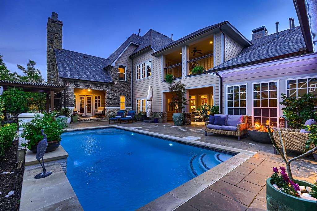 MOTIVATED SELLER - TOUR TODAY! Indulgent refined living! Stunning Tudor-style estate, gracefully positioned on a premier corner lot in the prestigious Austin Waters. Step into the expansive gourmet kitchen, featuring premium stainless-steel appliances, gas cooking, an oversized walk-in pantry & granite countertop. The open-concept living area framed by majestic exposed wood beams & commanding central fireplace with gas logs, offering picturesque views of the impeccably manicured backyard retreat. Executive Library has views to front & backyard with a stunning fireplace. Primary suite is a sanctuary of tranquility, complete with private flex space ideal for a nursery, secondary office, or gym—enhanced by an adjacent dry sauna. The spa-like en-suite bath boasts dual vanities, a walk-behind shower, and an indulgent jetted tub & grand walk-in closet. A secondary primary bedroom and en-suite bath on the first floor provide a refined accommodation for guests who prefer stair-free convenience. Entertain with a fully-equipped projection media room, connected to a game room and an enchanting walk-out balcony. Outdoor living space is a true showpiece—featuring 3 covered patios, a charming arbor and outdoor kitchen with built in grill & fridge. Swim comfortably in the modern pool with both a heater and a chiller, making it comfortable all year. The estate enveloped by an 8ft privacy fence with automated gate, ensuring exclusivity, extra parking & security. Additional amenities include epoxy-finished floors in the garage, dedicated pet run, and meticulous updates such as newly installed AC units, hot water heaters in 2024 and impact resistant new roof in 2023. Centrally located near major highways—including 35, 121, 114, & DNT. Nearby, Grandscape offers array of upscale dining, shopping, & entertainment options. Every detail of this extraordinary property has been curated for those who appreciate sophistication, comfort, and timeless luxury. ALL OFFERS CONSIDERED