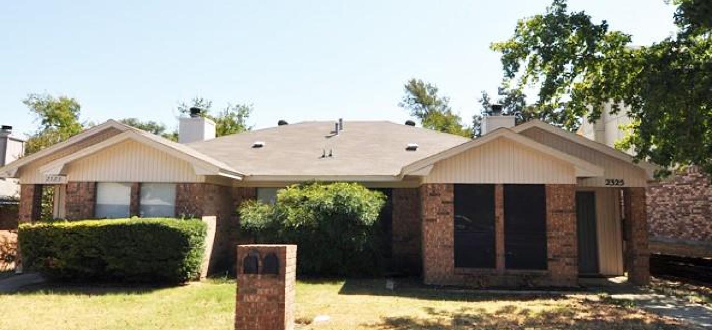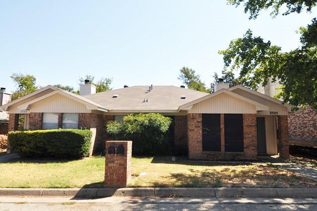 Cute 2-2 duplex in Arlington! Pretty neutral colors, spacious rooms, walk-in closets, great location and more! Entry opens to a large family room and nice dining to the left, offering wood-look laminate flooring, decorative wall moulding and a classic brick fireplace. Bright kitchen features white cabinetry, butcher block countertops, electric appliances plus a refrigerator, washer and dryer included! Master suite offers tray ceilings, a custom 12x6 walk-in closet, private bath and separate entrance to the backyard. Nice secondary bedroom, second full bath, full size washer & dryer area and covered parking in the rear. Located just minutes to highways, shopping and Lake Arlington. 1 small pet considered.