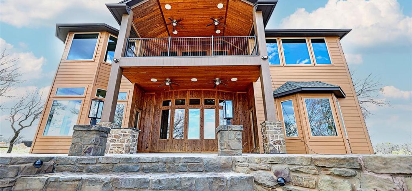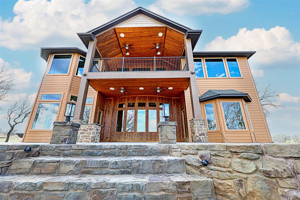 **Seller installed a new road from back of property to dock** Breathtaking, surreal, and the epitome of grand living are a few words that accurately describe the first impression of stepping inside this 5,000 square foot estate. This home is located inside a private, gated community on the shores of Lake Bridgeport and is designed for individuals who appreciate elegance and comfort. From the moment you step inside, you're greeted by an exquisite marble art piece located on the entryway wall, imported from Lebanon, according to seller, and sets the tone for the unique, high end design throughout the home. This home includes 22 feet tall ceilings, 4 spacious bedrooms, 4 bathrooms, a dedicated office, formal dining area, breakfast nook surrounded by large windows, and a private movie theater featuring synthetic leather chairs creating an immersive cinematic experience. This home has sophisticated designs, high end finishes including marble and porcelain lined walls and breathtaking water views easily seen on the private balcony of the second story. The chef's kitchen is a masterpiece featuring sleek black granite countertops and a wine rack, ideal for entertaining. Just off the kitchen, a breakfast nook featuring granite windowsills, bathes the kitchen with natural light through large windows. The primary suite boasts a vast walk in closet with built in shelves for storing 36 pairs of shoes and a spa inspired ensuite with a 7.5 ft tall glass door shower. Outdoor living space is equally as impressive, with a sprawling patio with cedar planks lining the walls and ceiling, and features a stone fireplace, perfect for year round enjoyment. Take a scenic hike down to the lake, where a private wood dock offers direct access to the water for boating, fishing and peaceful lakeside relaxation. Listed Below Tax Appraised Value!