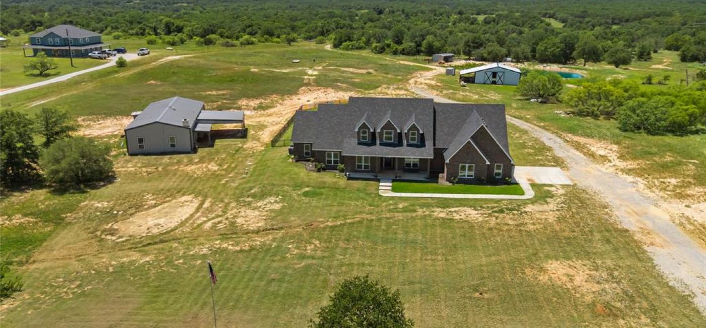 ASSUMABLE LOANS @ 4.5%, 23.75 Ag Exempted Acreage!** SELLER OFFERING $10,000 Concession** Welcome to this breathtaking 2022-custom built estate nestled on 23.75 acres of scenic beauty. This exceptional property offers a luxurious 4,051 sq. ft. two-story main home, a separate two-bedroom, two-bathroom guest house, and a charming barndominium with an attached workshop—perfect for guests, hobbies, or multi-generational living. Step inside the main residence and be captivated by soaring beam-accented ceilings, expansive windows that flood the space with natural light, and an open-concept layout designed for modern living. The chef’s kitchen, formal dining room, and spacious game room make entertaining a dream. Unwind by the stunning double-sided fireplace or under the stars beside the outdoor patio fireplace. Outdoors, the amenities continue with a heated inground pool featuring a waterslide, hot tub, and tranquil water features—ideal for year-round enjoyment. Animal lovers will appreciate the well-equipped livestock barn with stalls, traps, and pond. With panoramic views, endless possibilities, and unmatched charm, this is more than a home—it's a lifestyle. Don’t miss the opportunity to claim your slice of heaven!