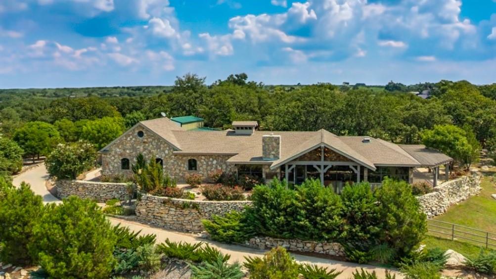 This stunning 3 bedroom, 3.5 bath home showcases classic Texas Hill Country ranchstyle architecture and sits on 3 acres atop a private hill, offering sweeping views of a serene, private lake. Designed with luxury and craftsmanship in mind, the home features authentic Amish hand-hewn beams, dry stack stone walls, flagstone and wide-plank oak flooring, and custom knotty alder doors that bring warmth and sophistication throughout. A major investment in professional landscaping has elevated this property to a true luxury retreat, lush native plantings, stone pathways, and curated outdoor living areas create a peaceful, elevated environment for relaxation and entertaining. The open-concept layout inside blends seamlessly with nature outside, with large windows that capture the views and flood the space with natural light. Three exceptional outbuildings provide incredible flexibility. Newly completed in 2024, a massive 110'x50' two-story, foam-insulated, climate-controlled structure features its own bathroom and four ductless heating and cooling units, perfect for a workshop, event venue, or car collection. A 24'x30' barn has been thoughtfully converted on one side to include a guest apartment with kitchenette ideal for visitors, extended family, or rental income. Artists, creatives, or those seeking solitude will be captivated by the 400 sq ft studio with soaring 19 foot ceilings, a dramatic rock fireplace, a stacked stone feature wall, and grand 12in Douglas fir beams with 4x12 exposed rafters. Every corner of this property speaks to quality, beauty, and thoughtful design, luxury living with timeless Texas charm.