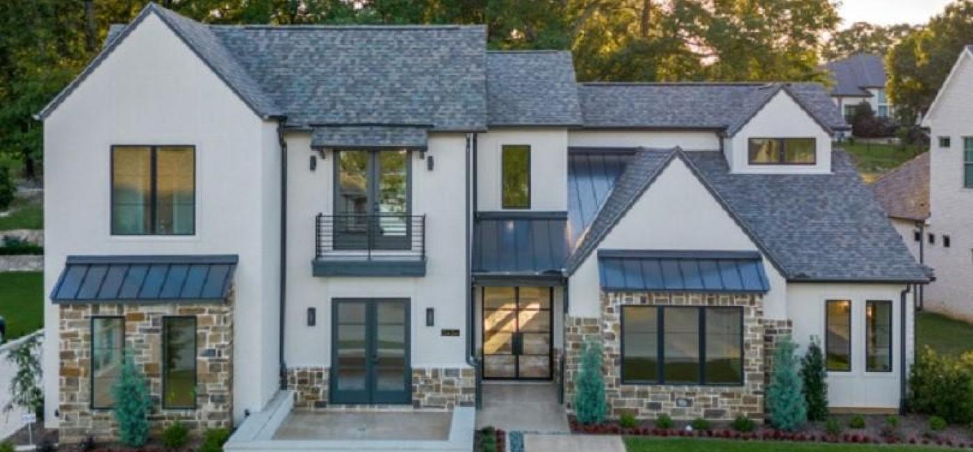 New Construction. Welcome to our stunning Texas Modern home with breathtaking lake views. The elegant tone is set from the first look, with double metal and glass front doors, stone, stucco and brick exterior, and flows inside with remarkable solid cedar interior ceiling beams and headers. The center of the home showcases a luxurious open concept, perfect for gathering and entertaining, with an enormous great room, dining area with wet bar, and striking professional grade kitchen whichshowcases a stunning 11’ long Chantilly quartzite island. The kitchen is flanked by a coffee station, leading to a walk-in pantry, and a separate butler’s pantry - all providing ample storage and seamless convenience for all your culinary needs. You access the motor court and both garages from the kitchen in 2 directions. The primary suite is a serene lake-view retreat with a spa-like bath, perfect for unwinding after a long day, and a room-size closet connected to the laundry room. The large study or den has more lake views through double glass doors that open onto the front terrace for outdoor living or watching the lake in the relaxing pine scented air. Do not miss the attached private cottage suite through the rear entertainment space with outdoor kitchen and fireplace. The comfortable suite or secluded work-from-home office has its own garage access and provides privacy and comfort, making it perfect for extended family members or guests. Upstairs, a central loft opens out to a lake view balcony and three more large bedrooms with their own full bathrooms to provide comfort and privacy for family members or visitors. With its thoughtful design, luxurious features, and stunning lake proximity, this home is tailored to accommodate the needs of multigenerational living while maintaining an atmosphere of elegance and comfort.