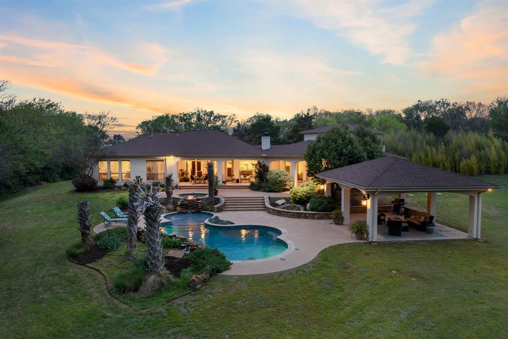 Great Opportunity! Over $200,000 below 2025 appraised value! Don’t miss this rare opportunity to own a private 5BR 4.5BA custom home on 2.3 wooded acres with pond, just minutes from shopping and dining along Custer Rd and Hwy 380. This spacious, versatile property features a 4-car garage, a separate 1BR garage apartment, and a 2BR multi-gen suite—ideal for extended family, guests, or income-producing use. Inside the main home, you’ll find 4 bedrooms and 2 living areas on the main level. Large entry with ceramic tile and see-through fireplace   Formal dining room and private study, Family room with wood floors, wood-beamed ceiling, and wall of windows overlooking the backyard,  Gourmet kitchen with island and ample counter space, Primary suite + secondary bedroom on one side of the home, Sunroom or flex space with backyard access A breezeway leads to the 2-bedroom suite with living area, full bath, private patio, and plumbing for a kitchen which is perfect for multi-generational living or a private rental setup. Outdoor features include: Oversized covered patio with fireplace, gas line, and TV hookup,  27x21 covered gazebo,Pool and spa with waterfall,  Secluded, wooded backyard with pond Additional highlights: Garage apartment with full kitchen, bath, laundry, and private entry,  Both the 2BR suite and garage apartment have been used as short-term rentals for nearly 10 years. New Whole Foods, restaurants, and shops coming soon nearby. This unique property offers privacy, flexibility, and exceptional value in a prime location. Schedule your showing today!