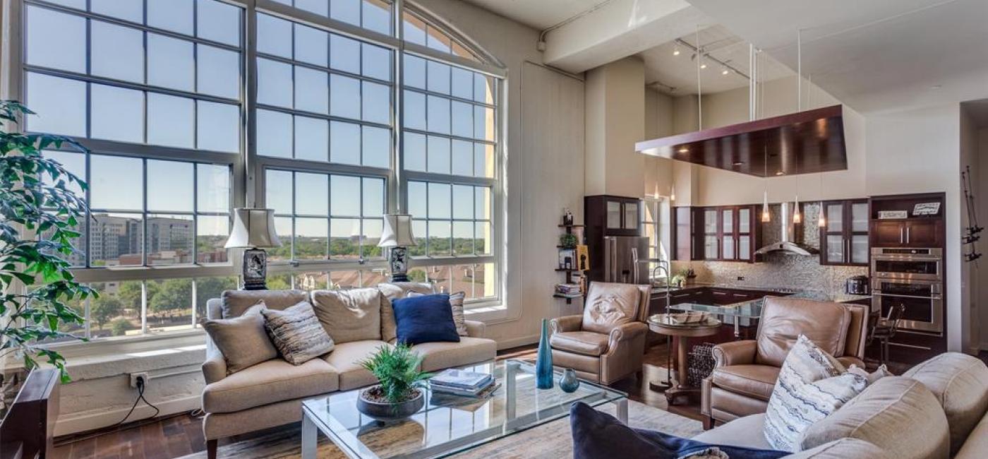 Luxury Loft Living at One Montgomery Plaza. Experience the perfect blend of historic charm and modern luxury in this stunning unit at One Montgomery Plaza. Design-forward features include soaring 16-foot ceilings, massive 12-inch-thick concrete exterior walls for superior sound insulation, and expansive windows that flood the space with natural light. Sleek sliding barn doors, Studio Collection hardwood flooring in the living areas, and spa-inspired bathrooms create a refined, contemporary aesthetic. The chef's kitchen is equipped with high-end GE Profile stainless steel appliances, offering both style and performance. This unit also includes two deeded side-by-side parking spaces (2195 & 2196) conveniently located in the West Tower Garage. Enjoy unmatched amenities in this resort-style community, including a luxury rooftop pool with private cabanas and spa, outdoor kitchens and grilling areas, putting green, media room, indoor lounge, fitness center, gated dog run, and 24-hour concierge with secured access. With daily public transit connecting Montgomery Plaza to Fort Worth’s vibrant Cultural and Entertainment Districts—and effortless access to I-30, I-35, and Hwy 121—your lifestyle will be as convenient as it is elevated. Discover the exceptional lifestyle of Montgomery Plaza—schedule your private tour today! Fridge, washer and dryer convey.