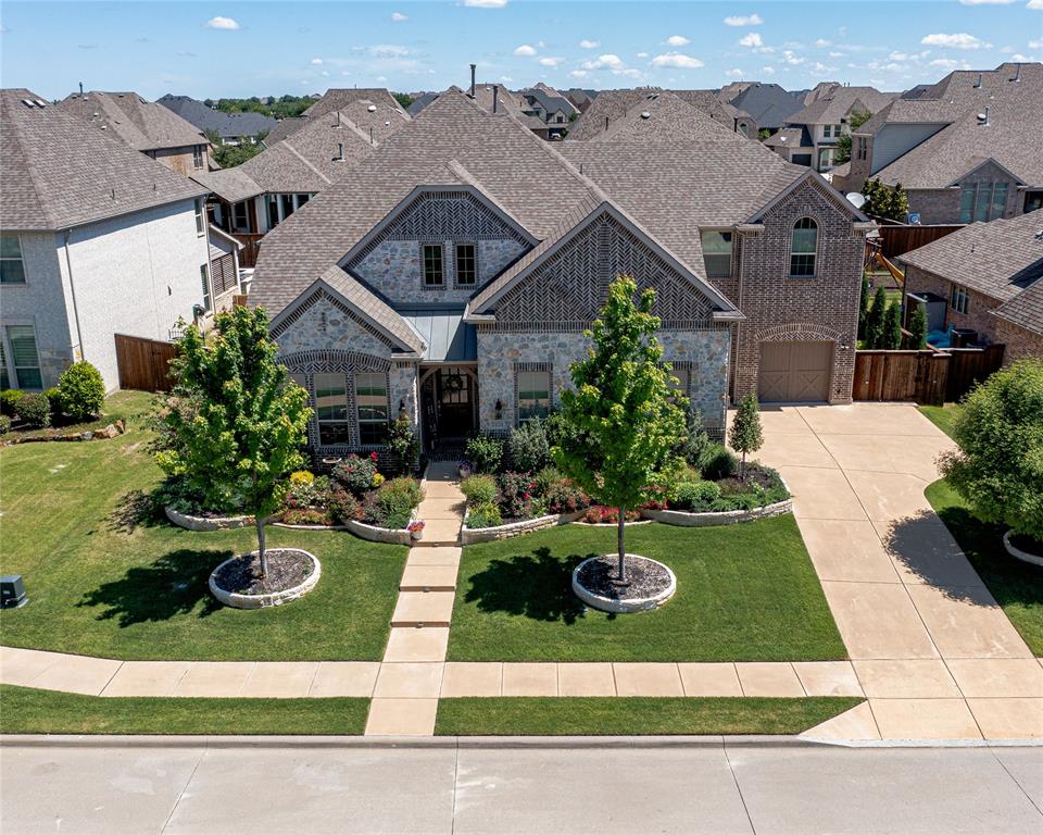 Wow! Don't miss your chance to live in the national award-winning master-planned community of Mustang Lakes, located in the highly coveted Prosper ISD, with this AMAZING move-in ready 5 bedroom, 6 bathroom home with a 3-car garage, and an incredible backyard oasis you don't want to miss, complete with pool, spa, waterfalls, firepit, large outdoor kitchen-bar, huge covered patio with fireplace, dual element heaters, and tv-surround sound, PLUS beautiful landscaping, decking, and artificial turf for a low maintenance resort retreat! More features include bonus room (office) with wall of built-ins, formal dining room, butler's pantry with wine cooler, loft, breakroom, and FULLY FURNISHED AND EQUIPPED theater-style media room. This home features an open-concept living area with vaulted ceiling, handscraped hardwood floors, gas fireplace, and a plethora of windows flooding the home with natural light and amazing views of the backyard. The contemporary kitchen is a chef’s dream, boasting 6-burner gas cooktop, double convection ovens, quartz counters, stainless steel appliances, hidden spice racks in range hood, large island with farmhouse sink, and spacious walk-in pantry. The primary suite offers a serene retreat, luxurious en-suite bathroom with 2 walk-in closets, soaking tub, separate shower, dual sinks, and attached private toilet room. Just a short walk to the largest amenity center in North Texas, featuring resort-style swimming pools, indoor-outdoor entertaining spaces, state-of-the-art fitness center, and access to a 20-acre central park with hiking trails, mature trees, tennis courts, and private lake with an island. This home is perfect for families looking for unmatched comfort, style, and plenty of space and amenities for entertaining! HOA dues cover front yard maintenance (they take care of your mowing, edging, bush trimming, and fertilizing)! Lender incentives up to $5,000 in closing costs if buyer uses Lacey Tucker at Guild Mortgage. Seize this opportunity!