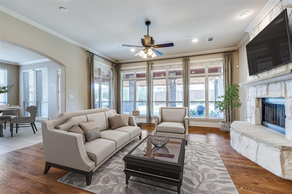 SENSATIONAL NEW PRICE! Luxury Huntington Home in Prestigious Castle Hills – A Prime Investment Opportunity! Welcome to your Dream Home! Nestled in the heart of Castle Hills, this stunning 5-bedroom, 5.1-bathroom Huntington home offers the perfect blend of elegance, comfort, and functionality. Each spacious bedroom includes a private en-suite bathroom and walk-in closet—ideal for multi-generational living or hosting guests. Step into a dramatic two-story foyer with soaring ceilings and hardwood floors. The private study features rich wood paneling, coffered ceilings, and built-ins—perfect for working from home. Love to cook? The gourmet kitchen boasts top-of-the-line Wolf appliances, Sub-Zero built-in fridge, Miele dishwasher, granite countertops, and an oversized island. A butler’s pantry with wine fridge leads to a formal dining room, making entertaining a breeze. The family room is filled with natural light and opens to a beautifully designed outdoor living space, complete with a wood-burning fireplace, built-in kitchen, peaceful garden fountain, and grassy yard—perfect for pets, play, or a future pool. The main-level primary suite offers backyard views, a cozy sitting area, an oversized custom walk-in closet, and a spa-like bath with dual vanities, soaking tub, and a dual-head walk-in shower. Upstairs features a large game room with wet bar, impressive media room, and split-bedroom layout for added privacy. Additional features include a 3-car garage, extended driveway, and brand-new carpet installed in March 2025. Live the Castle Hills lifestyle with access to community pools, clubhouse, tennis courts, parks, scenic trails, and The Village Shops with local dining and retail.**Don’t miss this rare opportunity—schedule your private showing today!** **Buyer and Buyer's agent to verify all listing information.**