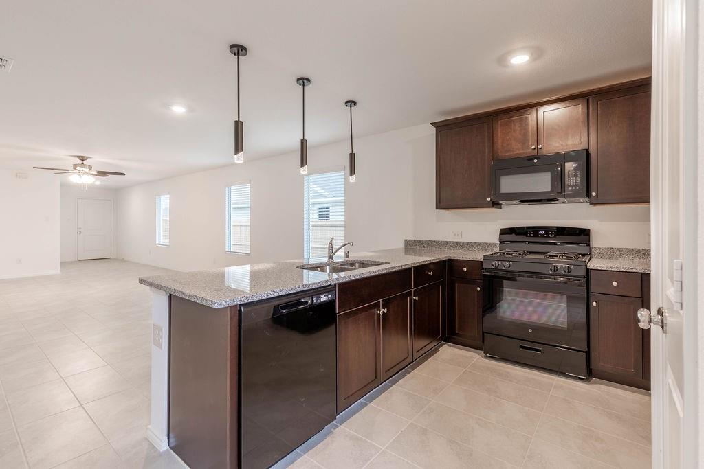 Get settled in your new home this summer, and make this GEM your home! Ceiling fans are in all bedrooms and the main living area, and there is modern kitchen island lighting and extra-large outdoor coach lights. The finished garage has a motorized door; it is hard-wired for the front door and the front yard for the security camera. This 3-bedroom, 2-bathroom home features a spacious single-story open floor plan with modern upgrades. The kitchen has granite countertops, a new microwave, a gas range stove, and a dishwasher. The owner’s suite features a walk-in closet and a private, full bathroom. Enjoy the oversized backyard and two-car garage. This community offers a resort-style pool, splash park, shaded cabanas, pavilions, walking paths, and easy access to great schools, shopping areas, and restaurants. Close to major highways and roads.