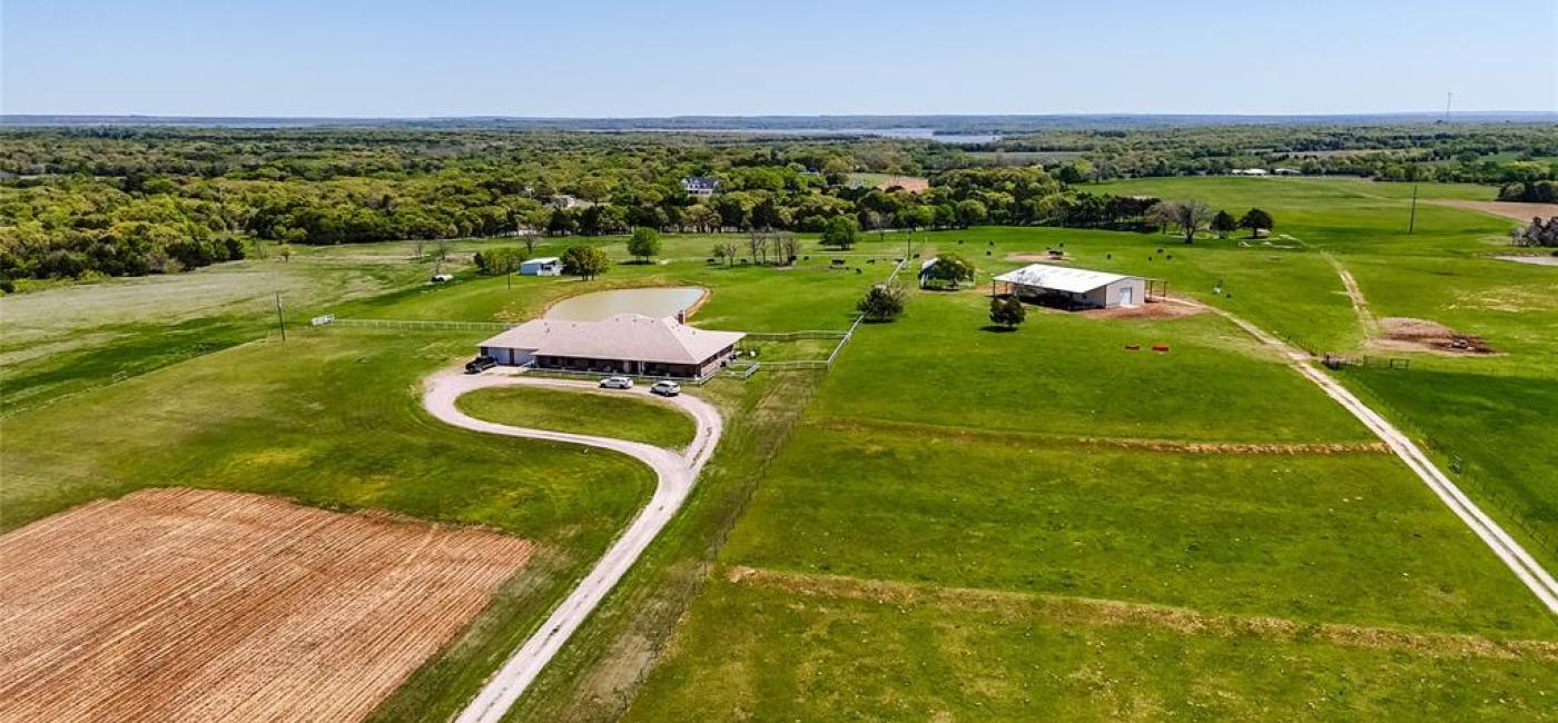This has it all! 34 acres with a perfect horse or cattle ranch less than 2 miles away from Lake Texoma. This luxury estate is made up of 3 parcels: 1) a 9000+ square foot home with a loafing shed and 2 huge ponds on 13+ acres with road frontage, 2) a 13+ acre pasture area with road frontage, and 3) a 7.48 pasture tract that has a very impressive newer shop with an office and a loft that equals over 4300 square feet. That building also has covered areas on each side of the building creating 3500+ of extra covered space. This could be a great horse barn. On this tract, you will also find pole barn with corrals. The 9000+ SF beautiful home has 7 bedrooms, 5.5 baths, 2 dining areas, 5 living areas, an exercise room, an office, and so much more. It is a lovely 2-story home that has beautifu sliding doors that open into an expansive sunroom which leads to a gorgeous porch that connects you with the tranquil, rural setting where you could see cattle or horses grazing. Start your new operation now: the owner is open to a turn-key sale for the right price. Live the good life!