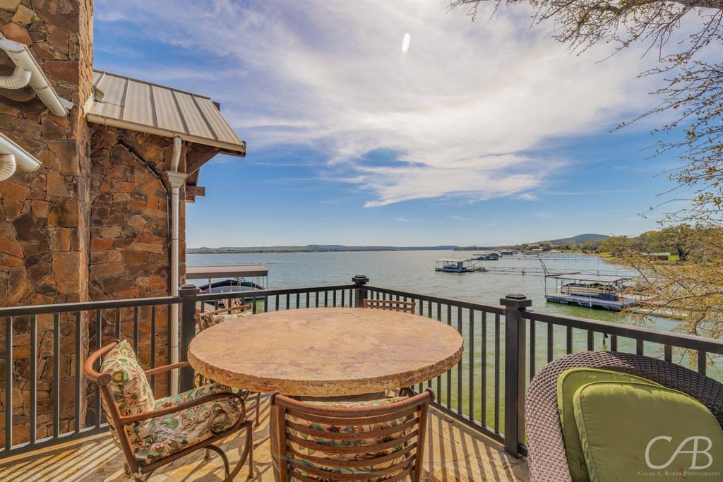 Best priced home with deep water dock on the lake! Lakefront living has never been better in this remodeled home with NEW two story dock with boat lift that has decking underneath boat, jet ski house, and swing from upper deck. This Peninsula residence sits on the RARE LOCATION of the coveted Colonels Row. This stunning property offers everything anyone could want in a lake property. Enjoy the walk out water access just steps away from your patio. The open-concept kitchen promises a venue for hosting family or friends in comfortable luxury. Two living areas and two kitchens are ideal for entertaining your guests. The house has high ceilings, magnificent finishings and gorgeous hardwood floors in main living area. The grand owners suite features a fireplace, oversized standing shower, tub, plus incredible lake views. Enjoy endless amounts of outdoor entertaining on multiple outdoor patio spaces each with breathtaking water views. Guest house is perfect for an additional flex space for kids, games, or sleeping area. Storage shed. Owner is agent.