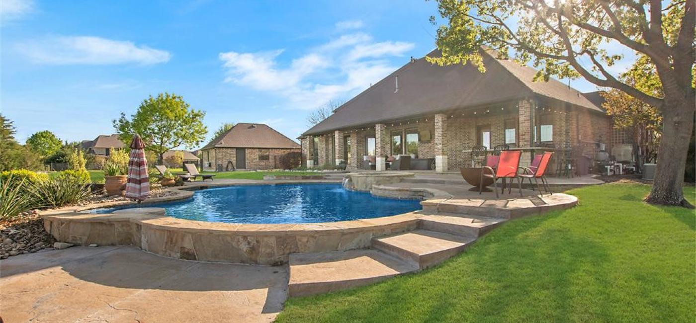 Exceptional Custom Home on 1+ acre in coveted Stoneleigh! Tucked away on a beautifully landscaped cul de sac lot, this stunning custom built residence offers space, luxury, and flexibility with a rare five car garage, including a 790 SF detached garage with full bath and closet—ideal for a guest suite, studio, or gym. Inside, a grand entry welcomes you to elegant formal dining and a private study with rich hardwood flooring and oak built ins. The family room features a striking stone fireplace and large windows overlooking the serene backyard. The gourmet kitchen boasts stainless steel appliances, granite countertops, oak cabinetry, a large island, and breakfast bar. The main floor offers a spacious primary suite and bath, plus a handicap accessible en suite guest suite. Upstairs, enjoy a large game room with built in bar, bonus room (makes a great second office or craft room), and two bedrooms with Jack and Jill bath. Outside, enjoy a sparkling pool with spa, covered patio, and lush landscaping.The pool can be heated and cooled for those hot summer days. Total 4989 SF under roof (4199 SF living plus 790 SF garage) at just 200.44 per SF—THE BEST VALUE in Stoneleigh. Updated carpet and paint within two years. SELLERS WILL CONSIDER A PAINT ALLOWANCE WITH ACCEPTABLE OFFER! BUYER CAN PICK PAINT COLOR! All information is considered reliable but not guaranteed; buyer and buyer’s broker to verify all information, including but not limited to square footage, utilities, easements, schools, etc.