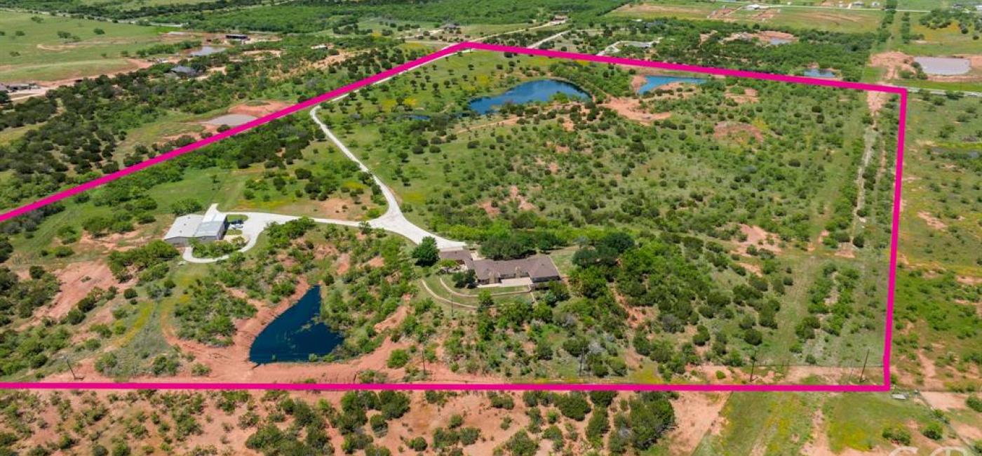 Welcome to South Taylor County’s most unique and picturesque properties. A rare blend of expansive, functional land & refined residential luxury. On over 48 rolling acres, this former exotic game ranch offers a captivating mix of heavily treed, open pastures blanketed in seasonal wildflowers, & panoramic hilltop views worthy of any magazine cover. The land is as diverse as it is breathtaking. 1 of the 3 tanks spans nearly five acres, providing a stunning centerpiece and a haven for fishing, swimming & relaxing. Native grasses stretch across the land. The property is designed to support a variety of uses, from equestrian & livestock to a fully operational game facility, & the thoughtfully installed sprinkler systems around the home ensure that the landscape remains vibrant and inviting all year. The house: refined comfort meets timeless charm. Expansive windows & a cozy bay window flood the home with natural light, framing spectacular views from every room. Plantation shutters throughout add an elegant touch while offering privacy. The chef’s kitchen has Frigidaire Professional appliances, a reverse osmosis water filtration, & ample workspace, making it as functional as it is beautiful. French doors lead to the outdoor areas, creating a seamless flow for entertaining or relaxing under the Texas sky. Thoughtful touches include a cedar lined walk-in closet in the primary suite, a built-in safe for added security, & an open, airy layout. Completing the property’s turnkey appeal is an impressive insulated equipment barn and shop. This well appointed structure features stalls, chutes, a hay loft, guest quarters, & 2 bathrooms. It is fully vented, equipped with extensive electric service, & illuminated by LED lighting, ensuring it is ready at all hours. Whether you envision a peaceful retreat, a productive ranch, or a luxury game facility, this estate offers the perfect balance of natural beauty, functionality, & uncompromising comfort.