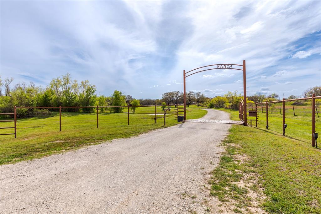 Home has brand new roof and rain gutters! It's hard to believe this private paradise on 22 acres is only a short drive away from Weatherford and only about an hour away from the DFW Airport! Step inside the sprawling home and you'll be captivated by the spacious living room and large kitchen with bar seating overlooking the beautiful saltwater pool with waterslide. This fully-fenced property has everything - a beautiful home, a pool, a pond, fenced pasture, chicken coop, fenced pen for livestock, a huge 50x30 workshop, 3 stock tanks, and even a paved basketball court! You'll love that all the oversized bedrooms are downstairs, while the upstairs entertaining area features a game room with wet bar, movie theater, and a vast balcony overlooking the countryside. Unwind in the master bath's oversized tub with country views right out of a magazine, then enjoy the sunset from one of the serene pond-side sitting areas. There's even an underground storm shelter for peace of mind.