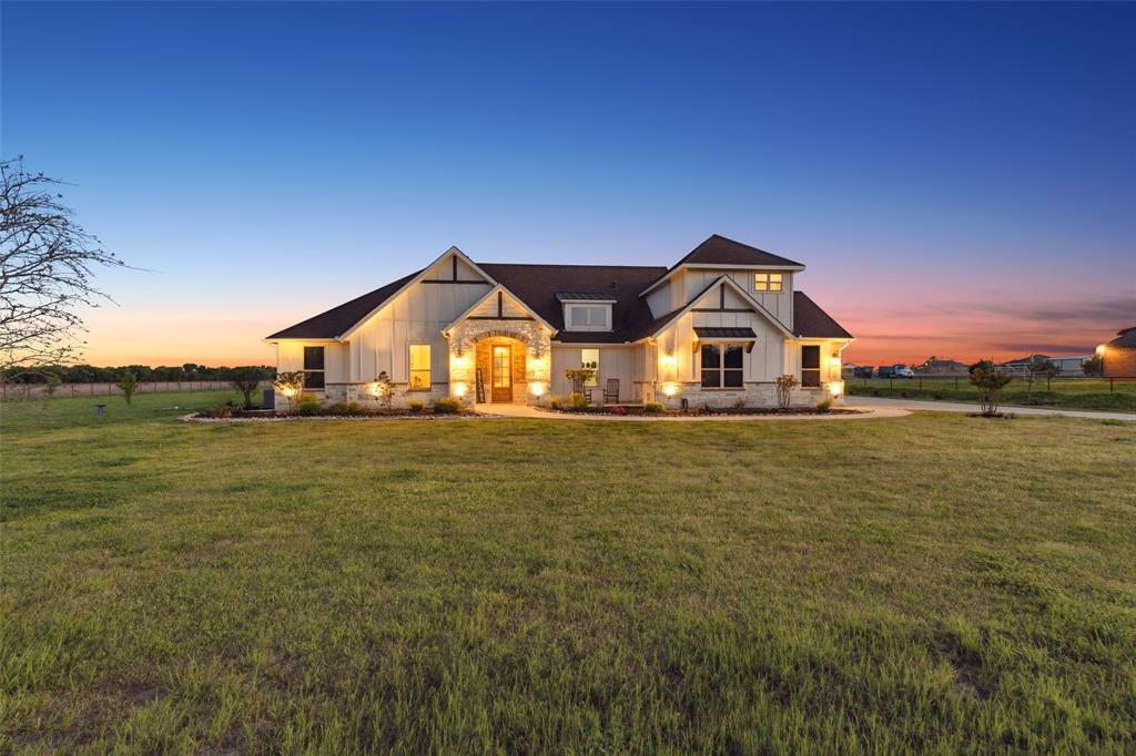A custom-built modern farmhouse takes center stage on this horse-ready 9.5-acre hobby farm, offering refined, laid-back luxury with a barn, a sand riding arena, and livestock-ready fenced paddocks. Inside, you're immediately drawn to an elevated interior where every finish & sightline has been curated to inspire. From the warmth of the wood-look tile flooring to the high ceilings & rich crown molding, the space feels both expansive & intimate, ideal for relaxed living & special gatherings with family & friends alike. An open great room creates the heart of the home with a spacious living area anchored by a stone fireplace with a live-edge wood mantle. The kitchen boasts floor-to-ceiling cabinetry, an expansive granite island with bar seating, a farmhouse sink, a 6-burner gas range, built-in oven, microwave & a walk-in pantry. The dining area showcases a built-in buffet with glass-front cabinets, open shelves over a designer tile backdrop & picturesque views of the barn and outdoors. Nearby, stained French doors open to a home office, while a staircase leads to an upstairs media room. The owner’s suite is a true retreat with panoramic views & a luxurious bath with a jetted tub & double walk-in shower that invites you to unwind. A large laundry room adds storage, freezer space, & access to the oversized garage with 8 ft. doors. A partly covered patio, plumbed for gas & water, is ideal for outdoor living. You're sure to appreciate the energy-efficient spray foam insulation & engineered slab foundation supported by 50 piers. For equestrians, the 3-stall barn has a drive-through concrete aisle, tack storage, & an overhang for RV-trailer parking or future stall expansion. A sand-based 72×120 riding arena, 2-stall donkey barn with loafing shed, & cross-fenced pastures support livestock and equestrian use. Located in the highly rated Caddo Mills ISD, this property offers a turnkey setup for horse lovers & hobby farmers alike. Call for more details & a full list of features