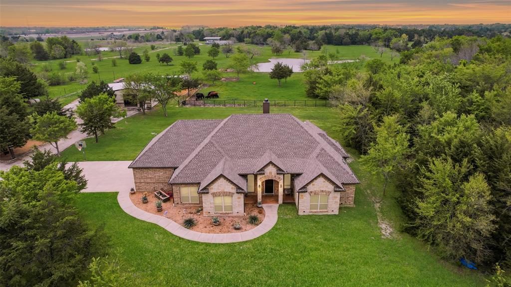 Nestled on 16 serene, ag-exempt acres, this exquisite 4-bedroom, 2 bath and a half bath custom home seamlessly blends luxury with peaceful countryside living. Surrounded by mature, hardwood trees, the property offers unmatched privacy and significant savings on property taxes. With 2,542 sq ft of beautifully designed living space, the home welcomes you with an open floor plan, rich hardwood floors, and a warm, inviting atmosphere. The gourmet kitchen is a true showstopper—featuring custom cabinetry, granite countertops, an oversized island, and premium finishes—perfect for entertaining or family gatherings. The spacious living area centers around a cozy wood-burning fireplace, creating a perfect backdrop for relaxing evenings. A sunlit study provides the ideal home office setup with serene views. The primary suite offers a private retreat with a spa-inspired ensuite complete with an oversized shower and soaking tub. Secondary bedrooms are thoughtfully laid out in a Jack and Jill configuration, while a flexible bonus room can serve as a fourth bedroom, media room, or game room to suit your lifestyle. Step outside to enjoy the stunning brick and stone exterior, a 30x40 workshop that offers multiple 220amp outlets with a 20x40 lean-to, and a fully stocked pond with a dock—ideal for fishing or relaxing waterside. The cedar-shaded sitting area is perfect for slow mornings, evening gatherings, or smoking your favorite meats. Fully fenced and cross-fenced, the property is ready for livestock or horses. Conveniently located near I-30 for quick access to Greenville, Royse City, and Rockwall, and just 45 minutes from Downtown Dallas, this property offers the best of rural tranquility and modern convenience. A rare opportunity to own a luxurious homestead with space, privacy, and versatility—this is Texas country living at its finest.