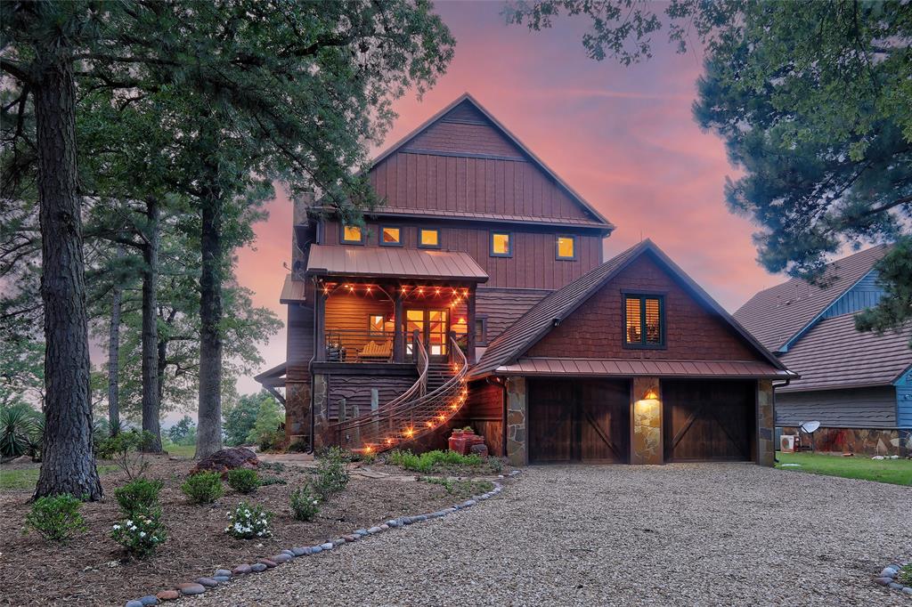 Eagle’s Nest View with Rocky Mountain Vibe—Texas Chic at its best! Move in ready home offers a multi-million-dollar experience. Pine Mountain Ranch hilltop views with architecture & design, cannot be replicated. The property features antler chandeliers, cowhide clad barn door with 6-gun handle, a dinosaur egg shaped basin atop an antler base, a 1-ton stone pillar fireplace with a roughhewn cedar mantle, distinctive interior and exterior light fixtures, hand welded banisters and railings, and cedar trim throughout. The furnishings are as impressive as the home itself, including Remingtons & rare collectibles, original art, area rugs, antiques, artifacts, unique tables, objet d’art, and designer bedding, for an additional $250k You’ll be immediately ready for entertaining and nesting. Enter on the second floor to panoramic views from the open living, dining, and kitchen areas. Open floor plan seamlessly blends with the roughhewn staircase, cathedral ceiling, beams, and posts. Outdoor dining includes a built-in grill, TV, table, chairs, and auxiliary seating for unobstructed skyline and sunset entertainment. The third floor hosts the private Eagle’s Nest retreat, one of two primary suites, featuring a luxury bath with double vanities, soaking tub, separate shower, cabinets, large closet, & covered balcony with a gas log fireplace with artisan features like antler chandeliers & handcrafted transoms and mirrors. The first floor includes another primary suite with natural stone waterfall views, a luxury bath with two sinks, walk-in shower, large closet, sitting area, & coffee bar. Third bedroom with ensuite bath has a desk nook & two closets. All bedrooms have direct access to covered patios and their fireplaces. The attached two-car garage includes storage closets & bonus room. POA developer allows residents catch&release fishing, restricted swimming pool use, and $50 per mo pickleball fee. See media for details about furnishings, updates & POA Owner financing available